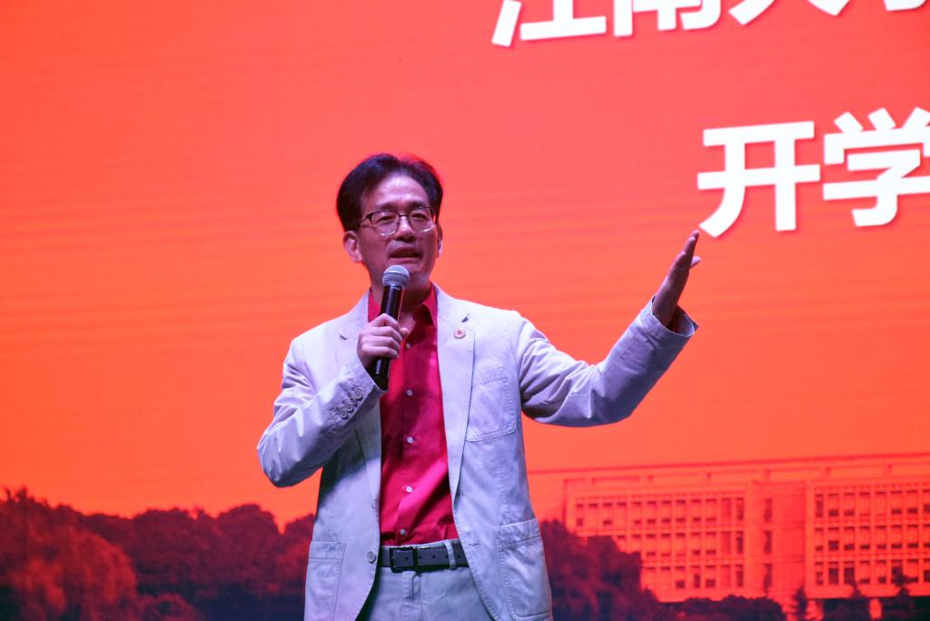 新生们表达诚挚的问候。接着,滕院长通过26个英语字母的赋分小游戏,指出ATTITUDE作为一个赋分100分的单词,意味着面对不确定的未来,大家要有向上的态度和明确的目标,才可以给自己带来充实美好的大学生活。由此,滕院长对在座师生提出三点希望和要求。一是为理想而躬行。在大学的四年里,商院学子应不断规划和明确自己的人生理想。同时,为了实现人生坚定的理想,需要继承和发扬成人片