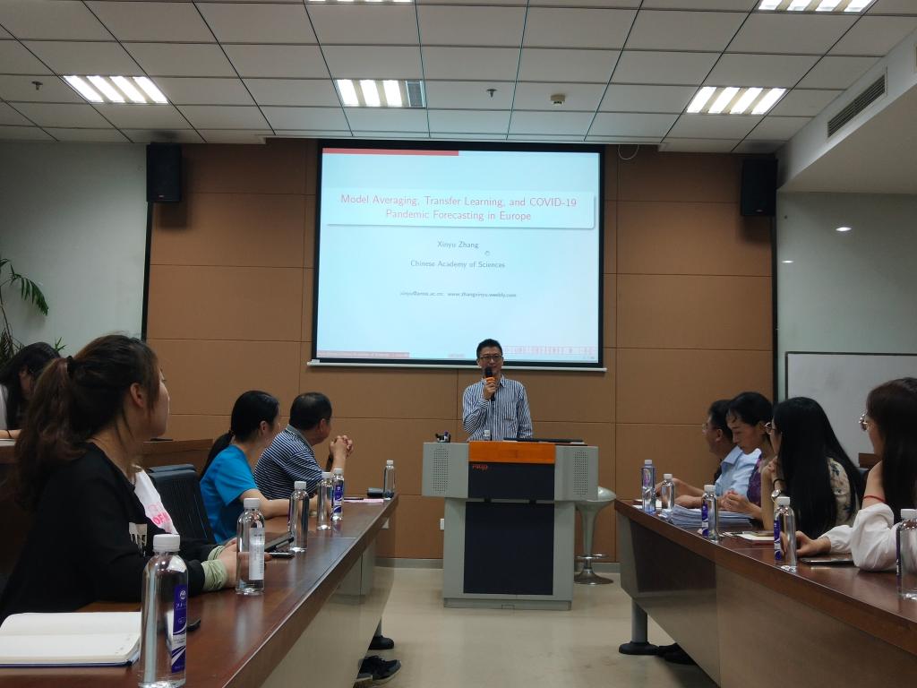 师生就研究样本的选取、疫情防控措施的影响,迁移模型选取分组的机理等问题进行了讨论交流。本次讲座,对提高学院师生对模型平均等相关理论研究前沿的把握大有裨益,也将对部分研究生开展预测理论与方法研究提供前瞻的理论指导,也将进一步推动学院师生加强与国内一流学者的学术交流与合作。