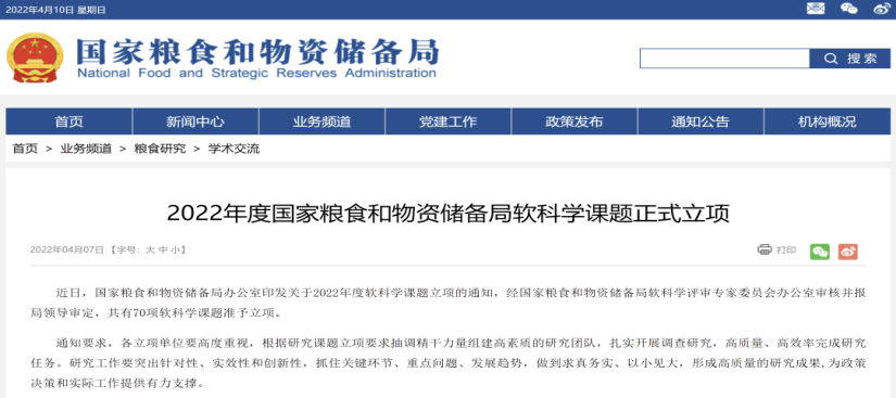 近日,国家粮食和物资储备局办公室印发关于2022年度软科学课题立项的通知,我校社会科学处处长、成人片