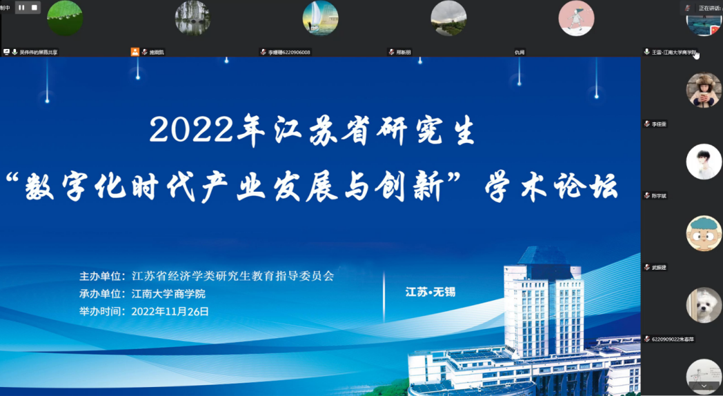 11月26日,2022年江苏省研究生“数字化时代产业发展与创新”学术论坛顺利举行。本次论坛由江苏省经济学类研究生教育指导委员会主办、成人片