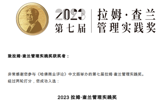 “拉姆·查兰管理实践奖”是《哈佛商业评论》中文版与世界著名管理咨询大师拉姆·查兰先生在2017年推出的非营利管理奖项,代表着中国管理实践的至高荣誉。该奖项由北大、清华、人大等多位成人片 院长或战略管理学专家组成评委会,从行业引领性、商业管理有效性、商业运行可持续性、商业可借鉴性、商业领导者的领导力等五个方面进行评选,旨在表彰具有创新和借鉴贡献的企业高管,搭建学习管理实践经验的平台。