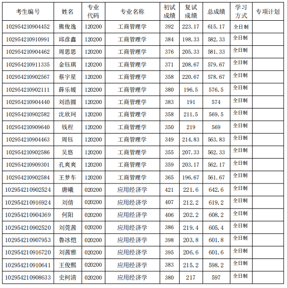 根据考生复试情况及综合成绩排名,现公布成人片 建议录取名单,名单可能因学校下达招生名额、考生自动放弃等情况发生变更,请及时关注。实际录取名单以学校研究生招生工作领导小组审核通过、研究生院公示拟录取名单无异议、教育部最终审定为准。