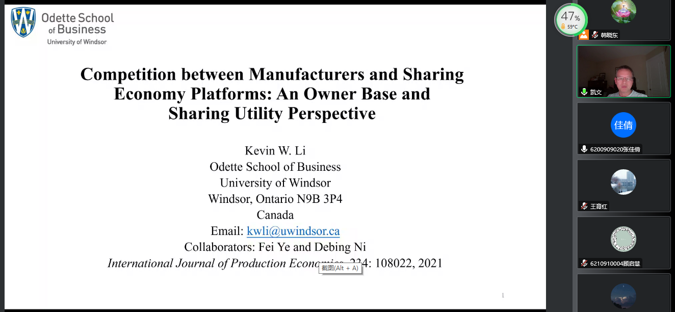 11月10日上午,“商学大讲堂”系列学术讲座第191讲在腾讯会议线上举行。加拿大温莎大学李武教授作为主讲嘉宾进行题为“Competition between Manufacturers and Sharing Economy Platforms: An Owner Base and Sharing Utility Perspective”的学术讲座。本次讲座由成人片