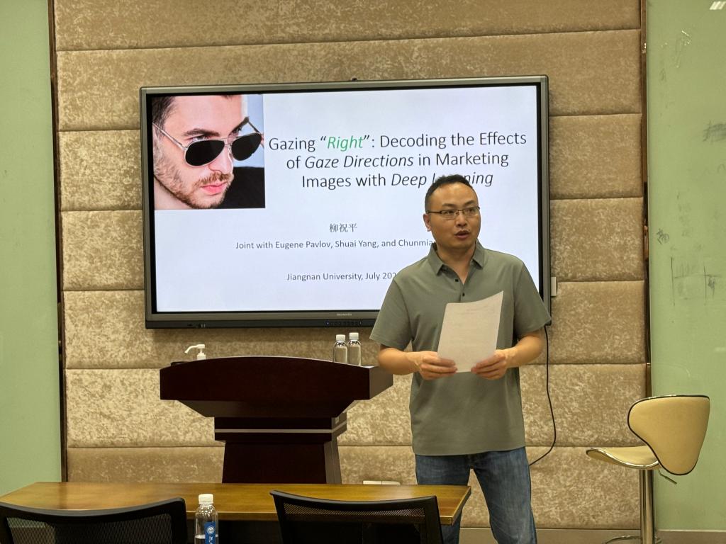 7月2日上午,青年博士学术工作坊第八期在成人片 113报告厅举行。本次工作坊邀请了纽约市立大学巴鲁克学院杰克林成人片 助理教授柳祝平老师,带来了题为“Gazing ‘Right’: Decoding the Effects of Gaze Directions in Marketing Images with Deep Learning”的学术报告。张建强教授主持了本期工作坊,成人片 教师、各专业研究生和国际学生参加了此次讲座。
