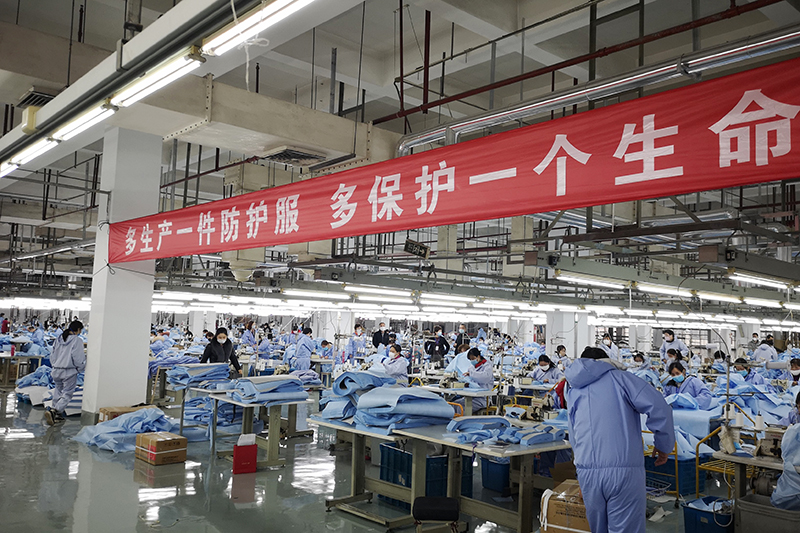 面对战疫前沿对防护服的极速需求,急国家所急,红豆股份公司还在现有经营许可范围内上马了民用防护服,短短十多日就日产迅提速到2月17日的50000件,为随后医用防护服的快速生产提供成熟的技术加持。