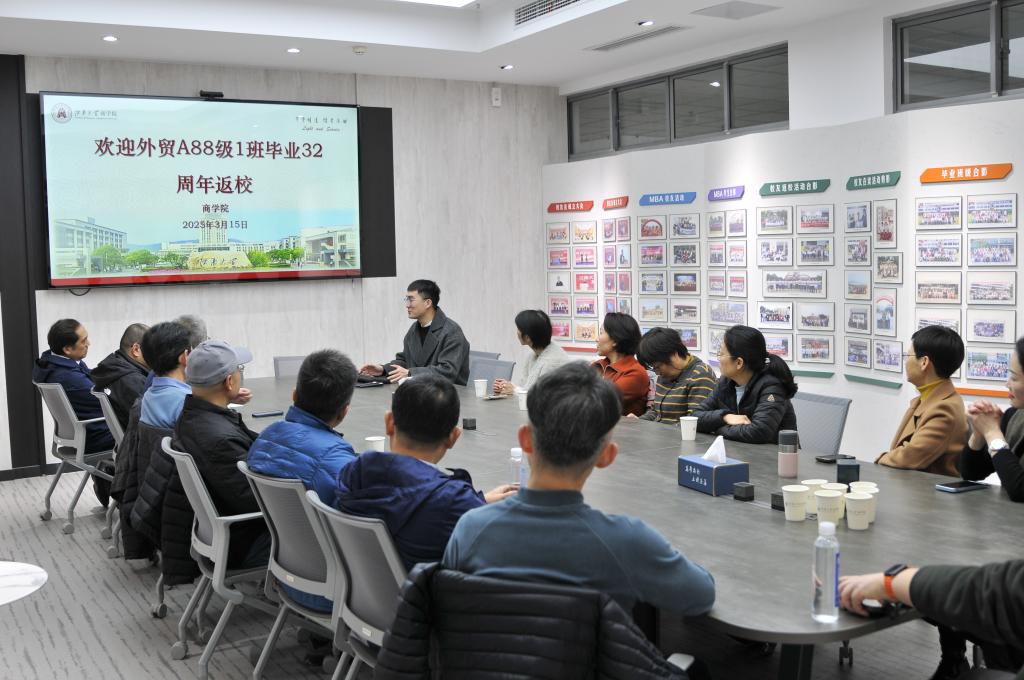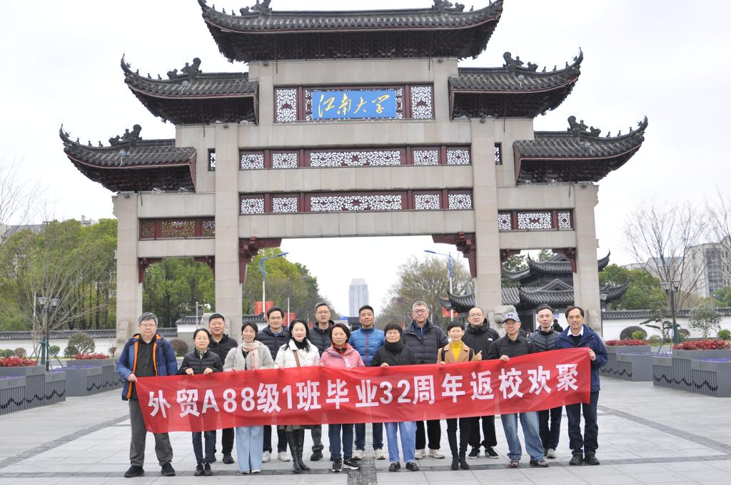 3月15日上午,成人片 外贸A881班校友从五湖四海齐聚母校,共庆毕业三十二周年。成人片 教师尤璞、校友工作负责人蒋天琪参加返校活动。