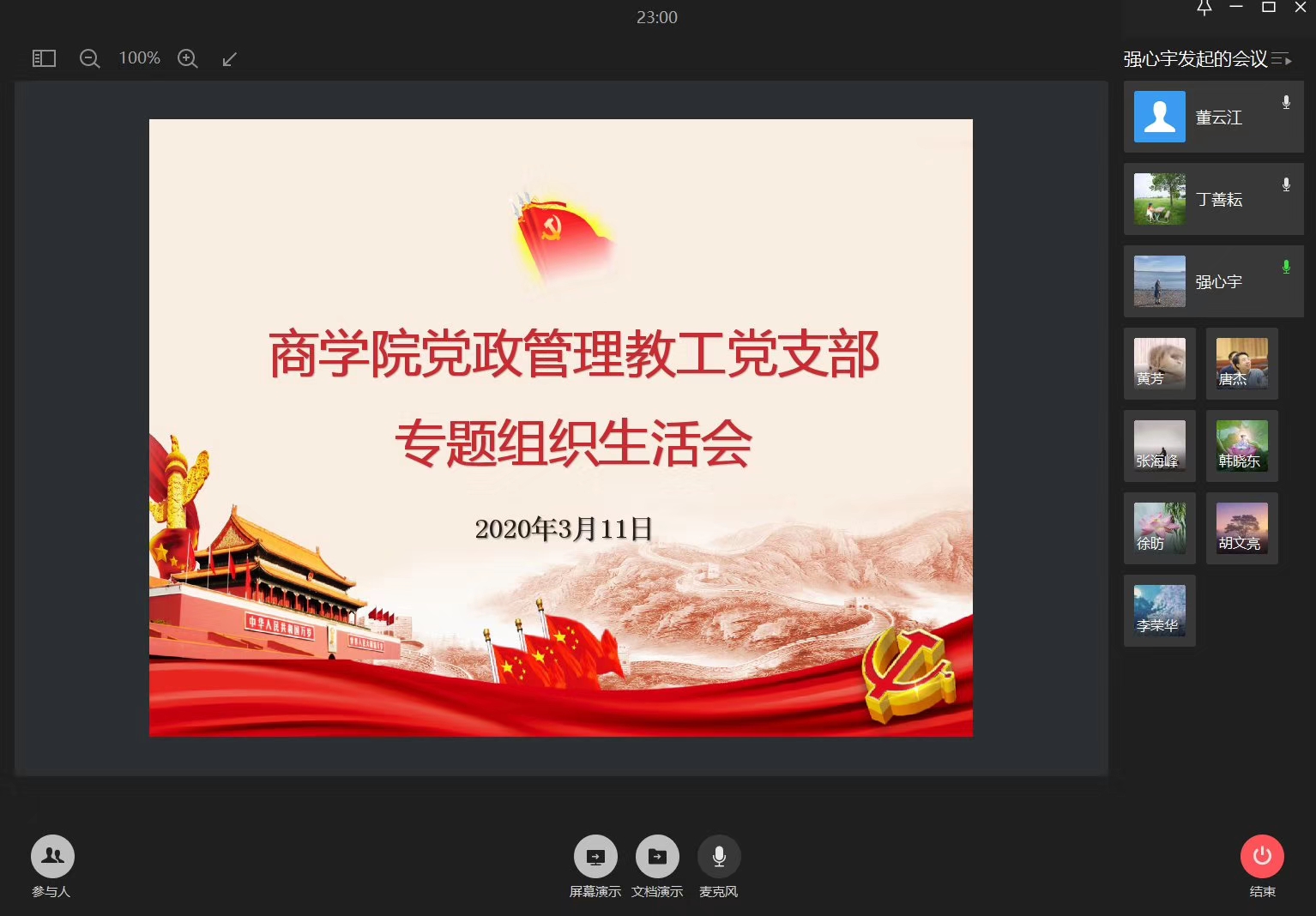 3月11日下午,成人片 党政管理教工党支部在线上开展“在战‘疫’中践行初心使命”专题组织生活会。