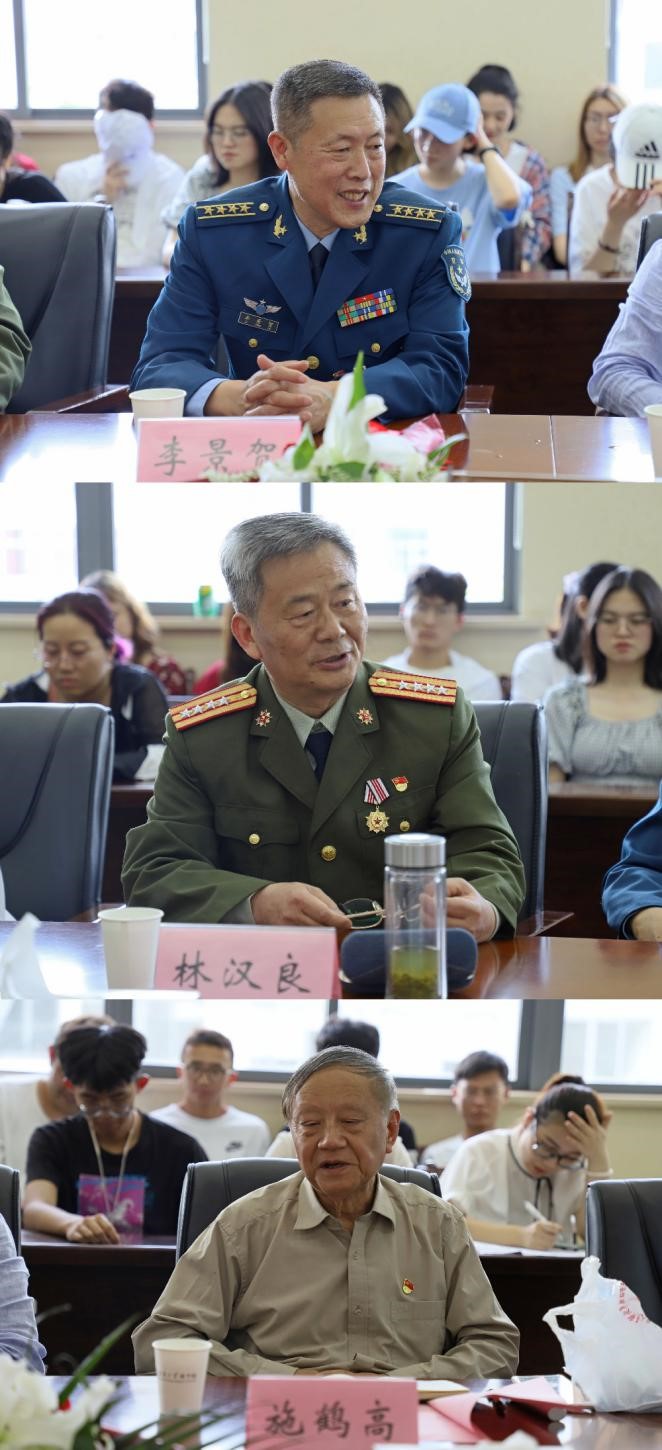 座谈中,军休中心老干部、原空军航空兵第十三师三十七团飞行二大队二中队副师职飞行员李景贺提出:希望同学们能够志愿为祖国的未来奋斗,和平年代,机遇与危机并存,国内外形势严峻,大家都需要努力学习文化知识,回报党和国家的教育培养,为中华民族的伟大复兴贡献力量。