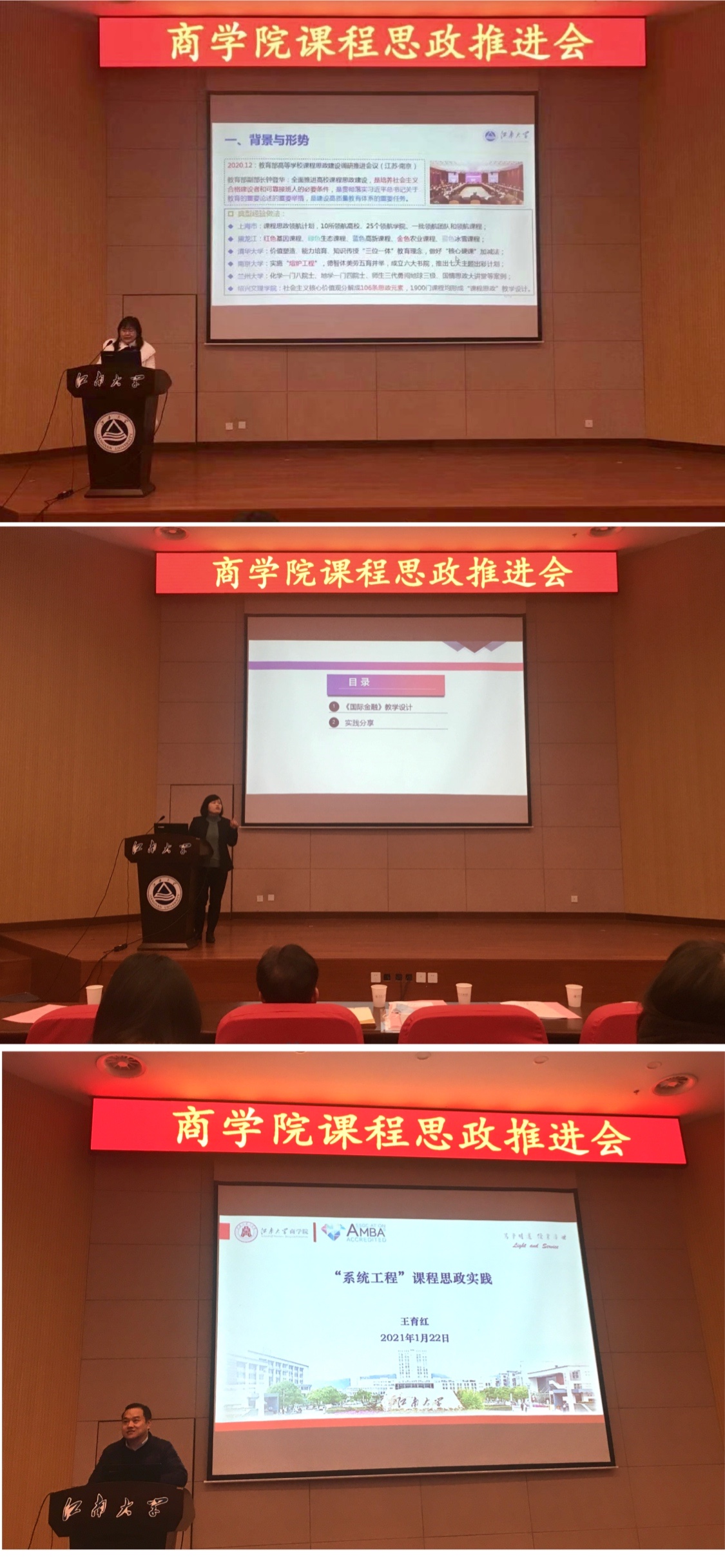 课程思政建设的总体目标是“院院有精品、门门有思政、课课有特色、人人重育人”,让课程思政的理念形成广泛共识,教师教书育人、课程思政建设的意识和能力全面提升,协同推进的体制机制更加健全;要按照校院整体推进、专业具体实施、以教师为主体、以课程为依托的实施路径,坚持育人为本,强化教师主体,加强分类指导,注重改革创新,突出学校特色。她还介绍了学校推出的“八个一”行动计划,以及开展课程思政教学改革系列研讨、修订人才培养方案和教学大纲、建设一批课程思政示范课程、立项一批课程思政教改研究项目、培养一批课程思政教学名师和团队、开展课程思政教学专题培训、建立一套课程思政教学评价体系、营造良好课程思政建设氛围等重点工作任务,希望成人片