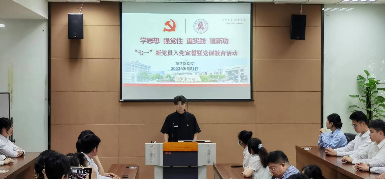 党委十分重视党员的仪式教育与党史学习教育,每年“七一”前夕组织开展新党员入党宣誓仪式与党课教育活动,希望全体党员同志深入学习和领悟党课教育活动的内容,从共产党人的信仰中激发热情、汲取力量,在今后的学习和工作中铭记入党誓词,勇担重任,以“苦”作舟,以梦为马,奔千里山河,赴万丈理想!