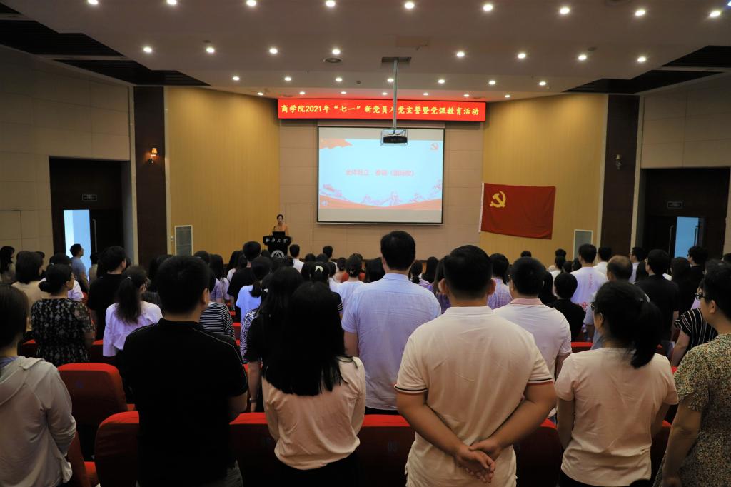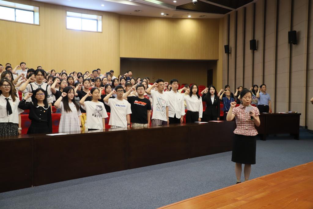 活动在庄严的国际歌声中开始。首先举行新党员入党宣誓仪式,成人片 党委副书记兼副院长徐静领誓,75名新党员面向党旗庄严宣誓,表达对党忠诚、永不叛党和愿意为共产主义事业奋斗终身的决心。在场的老党员也一同重温了入党誓词,牢记入党初心,筑牢信仰之基,强化使命担当。
