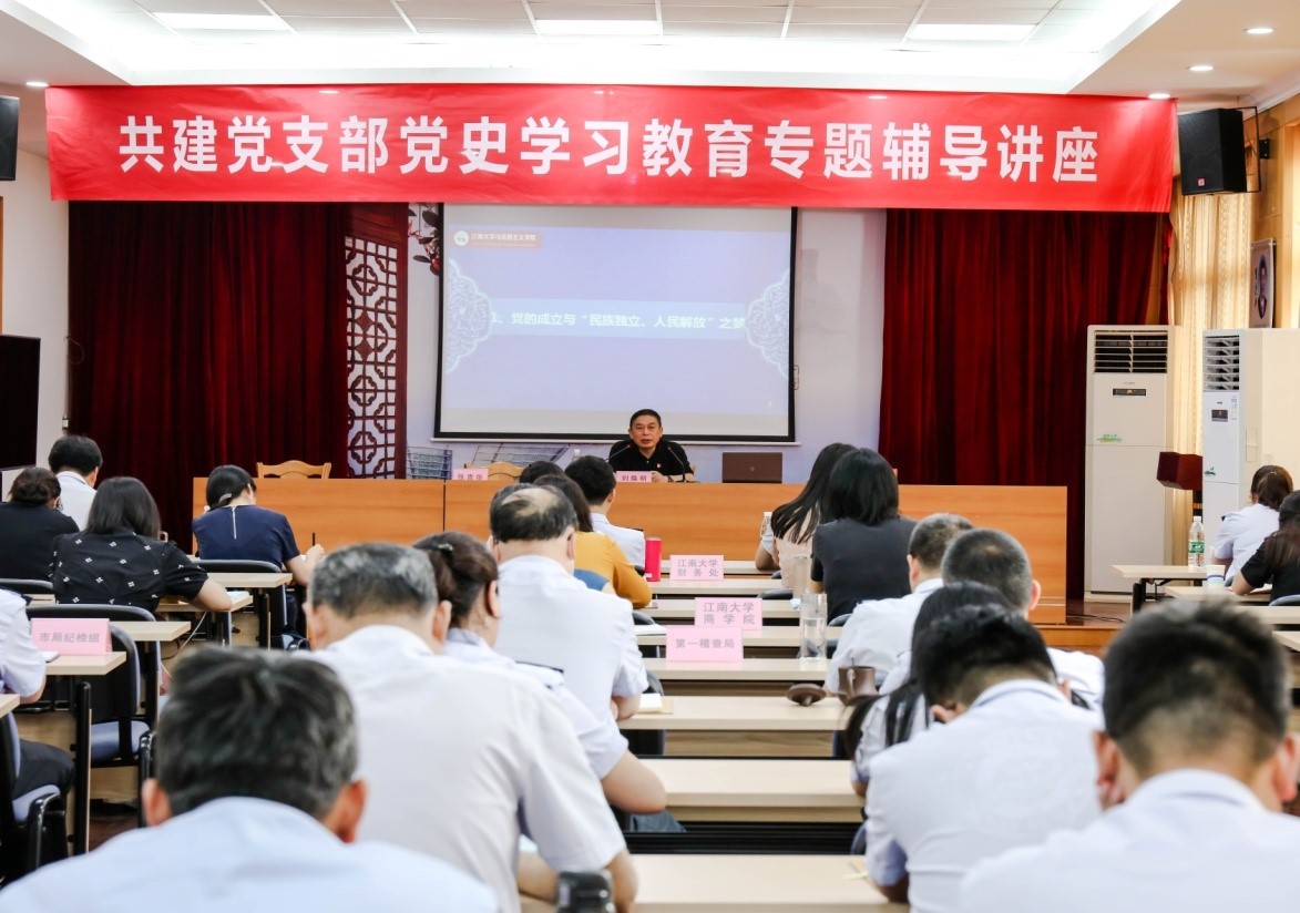 马克思主义学院院长刘焕明教授为共建支部作了题为《从胜利走向胜利的中国共产党》的百年党史专题辅导。