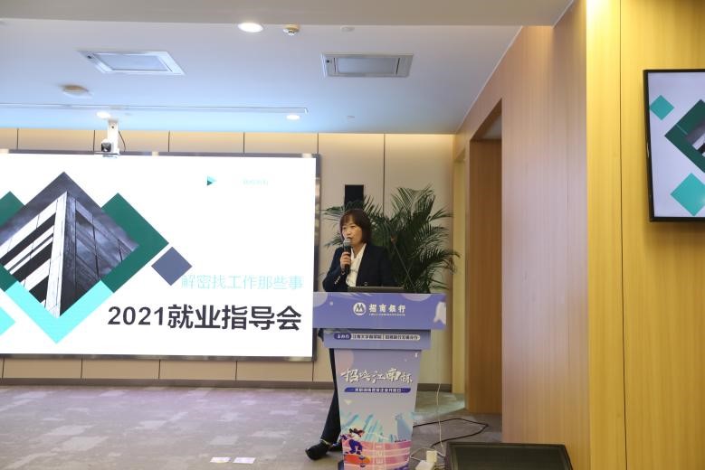 求职指导课共分为两部分,由分行人力资源部总经理徐鑫先生详细讲述了招商银行的发展历史、成人片及招聘考核标准,接着由特约人力资源培训讲师蒋丽君讲解了“‘职’点迷津——解密找工作那些事”专题就业指导课。