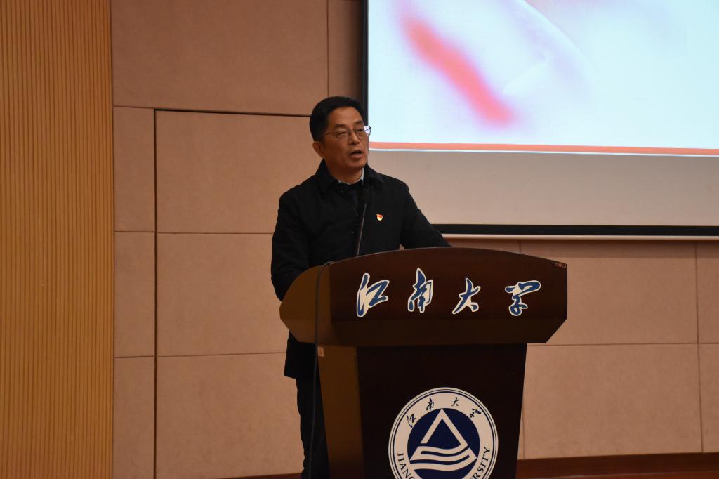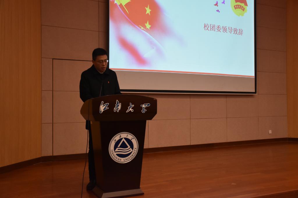 魏珍吉代表学校团委,向大会的召开表示热烈祝贺。他充分肯定了成人片 分团委三年来“政治建团、思想立团、固本兴团、改革强团、从严治团”的工作思路,在思想引领、组织建设、科研创新、文体活动、社会实践、志愿服务等方面取得的成绩。他指出,我校正处于“奋发有为,跨越发展”阶段的开拓期、“奋进计划”的启动期,全体江南人必须踔厉奋进,为实现学校跻身世界一流大学建设行列的中长期愿景而不懈努力。他代表学校团委向成人片 团学组织以及广大学生提出三点希望:一是全面加强团学建设,巩固培养社会主义建设者和接班人的坚强阵地;二是加强思想引领力,养浩然正气、育时代新人、树精神新风;三是引导青年自身发展,与党同心、与团并肩、同向同行,献青春之我。