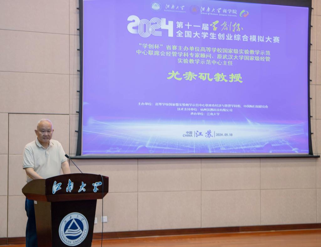 随后,尤赤矶教授介绍了“学创杯”大赛的发展历程,他指出“学创杯”以“创新创业,点亮未来”为主题,不仅激发了大学生创新创业热情、营造创新创业氛围、培养创新创业能力,更是推动产学研深度融合,促进社会经济发展、增进全国高校深入交流、加强合作、共同发展的重要契机。