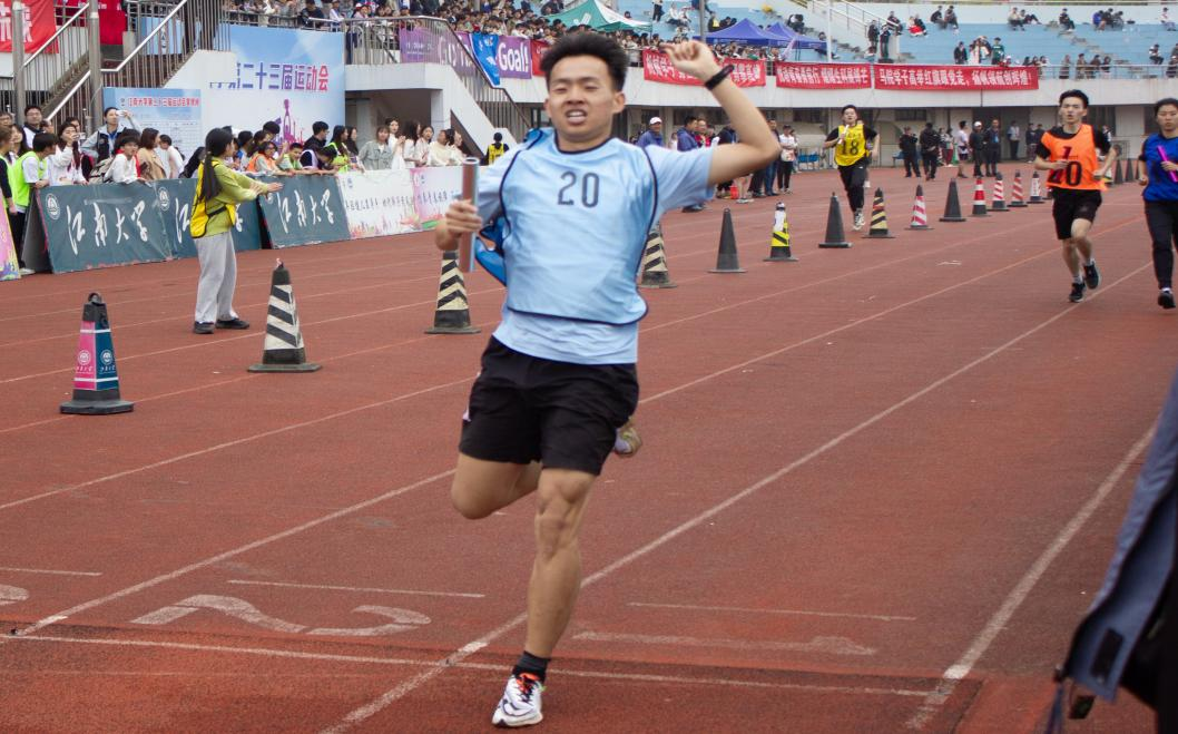 万米接力最后一棒运动员张泽鹏冲线瞬间