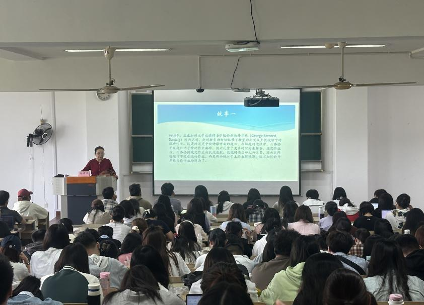 肖凌燕从心态对人的影响、阳光心态的特征以及如何建构阳光心态三个方面展开分享。她以过桥实验、乔治契丹克偶然破解难题、《面对巨人》中的“死亡爬行”为例,启发同学感受心态的影响力以及人潜能的爆发力;以生活中的日常小情景为例,由表及里引导同学培养分析问题的能力。此外,针对学生在学习和生活中会陷入低谷的情况,她也通过分享趣味故事,引导同学们学会自我认知管理,培养成长性思维,避免“白熊”效应的出现,实现学会与自己对话,做自己情绪的主人。