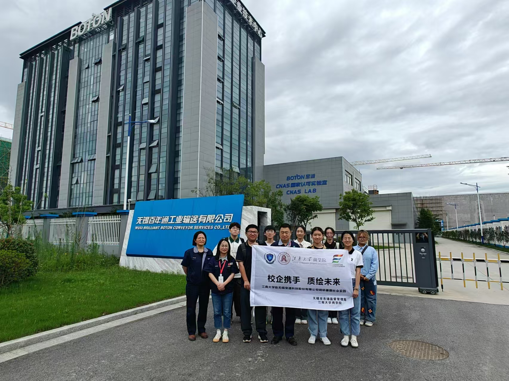 近日,实践团队走进无锡宝通科技股份有限公司。无锡宝通科技股份有限公司成立于2000年,是一家业务涵盖现代工业散货物料智能输送与服务、移动互联网两大领域的民营上市企业,深耕大型特种输送带、智能输送全栈式服务和智能输送工业互联网平台三项基础业务。宝通始终坚持“科技创新、差异化发展”的发展战略,不断延伸服务范围、拓展业务领域,积极布局“工业互联网+移动互联网”双轮驱动,于2021年获得无锡市“市长质量奖”。