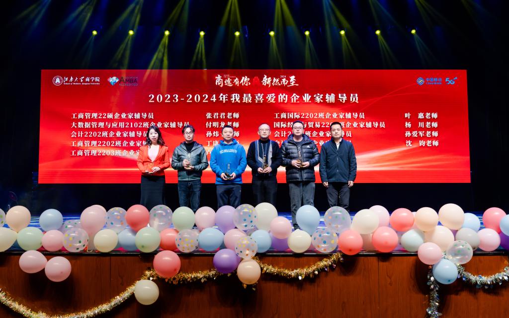 晚会现场,浦徐进为2023-2024学年成人片 “我最喜爱的企业家辅导员”获得者颁发奖牌,鼓励和表彰积极投身大学生理想信念教育、职业生涯规划、实践渠道拓展等工作的企业家辅导员,树立优秀企业家辅导员榜样。