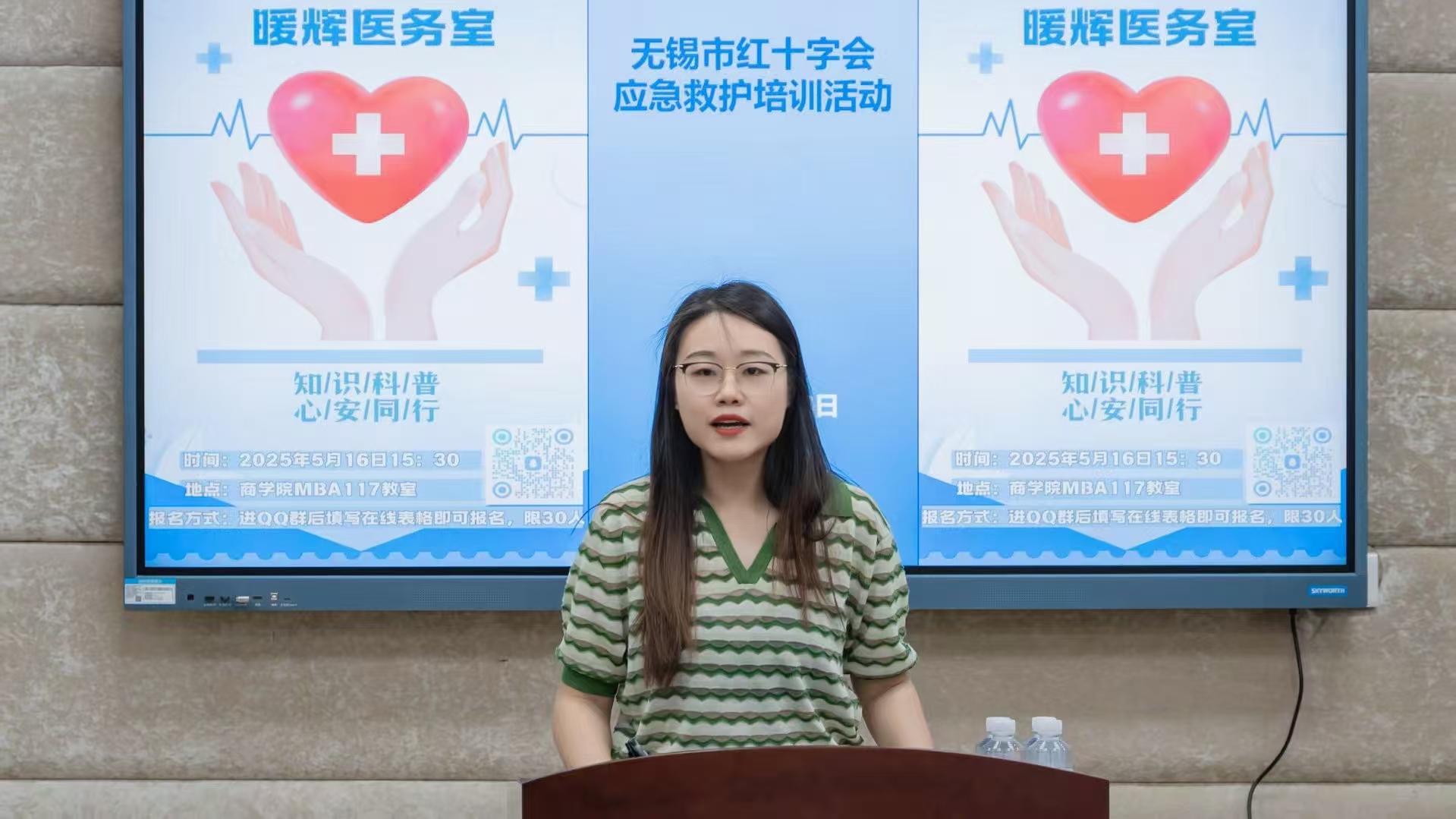 5月16日下午,成人片 联合无锡市红十字会,在学院117教室举办“应急救护培训进校园——暖辉医务室”专题活动。活动邀请无锡市红十字会专业老师陶晓作专题培训,30名成人片 学生参加系统理论教学和实操演练。活动由成人片 心理工作辅导员田雨主持。