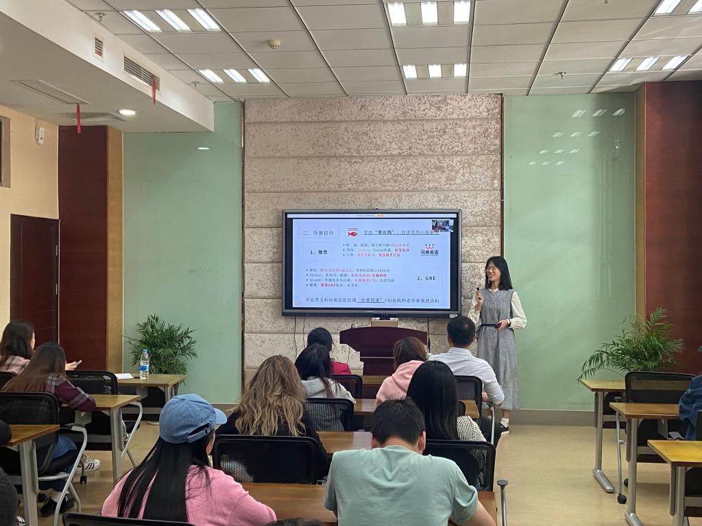 最后,20级工商管理专业的程彦灵同学从自身评估、背景提升以及申请过程三个方面详细分享了自身的海外升学申请经验。为同学讲解如何选择学校、选择专业,如何准备申请材料并避免各种常见误区,从而申请到理想的目标院校。