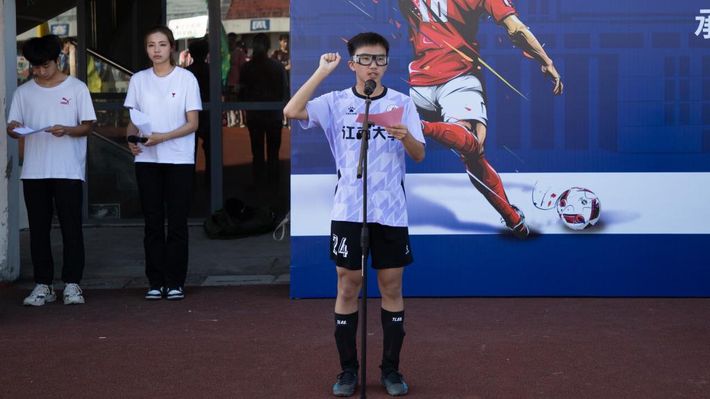 随后,本次比赛裁判员代表蒋铮璐和运动员代表钟远行分别进行宣誓。周建中宣布比赛开始。浦徐进为首场比赛开球。