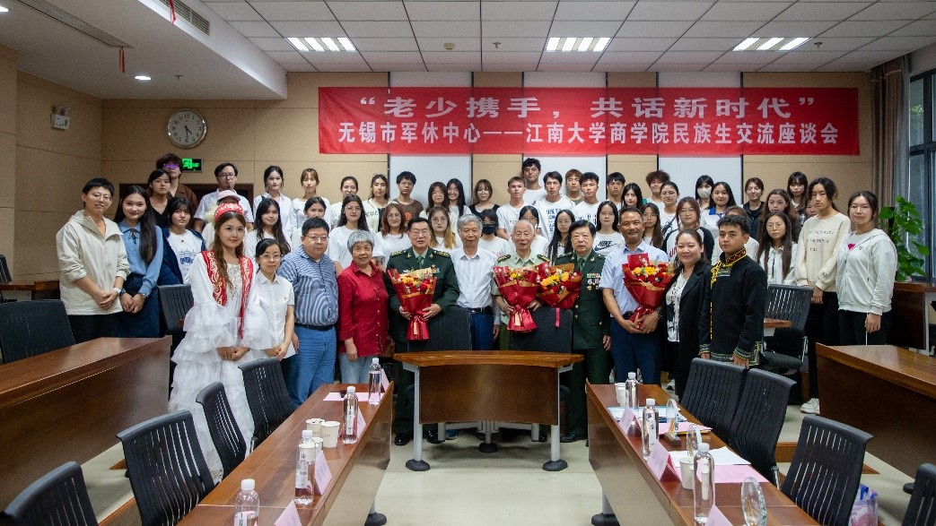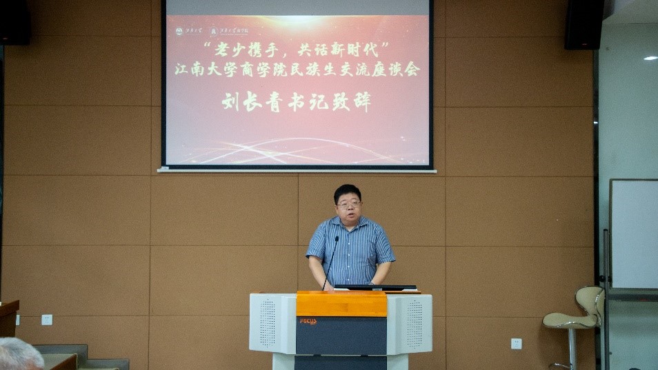 党委书记刘长青致开场辞,他指出党和国家高度重视民族团结工作,习近平总书记强调要引导各族人民牢固树立休戚与共、荣辱与共、生死与共、命运与共的共同体理念。刘书记回顾了2018年以来无锡市军休中心与校关工委联合开展的“民族一家亲、关爱育新人”民族学生捐资助学活动,向军休中心的老领导们对于学校人才培养工作的关心和支持致以崇高的敬意。刘书记指出,本次座谈会以“老少携手,共话新时代”为题,希望以军休中心老同志、成人片