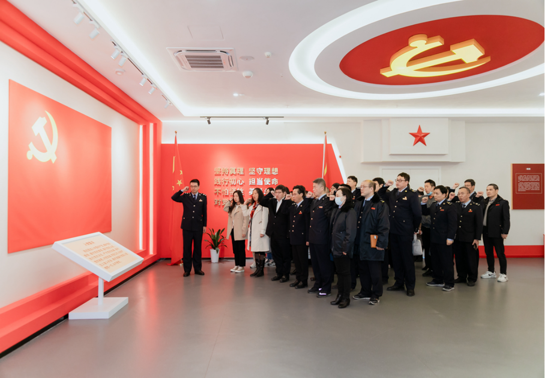 党课结束后,大家参观了延安精神展示馆和延安精神故事馆。在延安精神展示馆,通过史料和文物,大家身临其境地感受波澜壮阔的革命岁月,在庄严肃穆的氛围中,全体党员面向党旗,高举右手,重温入党誓词,表达了坚定不移的政治信念和奋斗的决心。在延安精神故事馆,大家观看了舞台剧《宝塔山下的誓言》,感悟革命先烈的家国情怀和时代担当。
