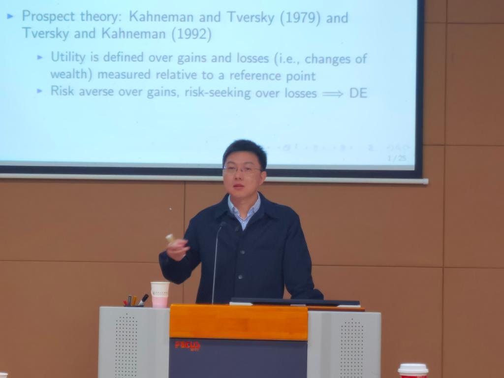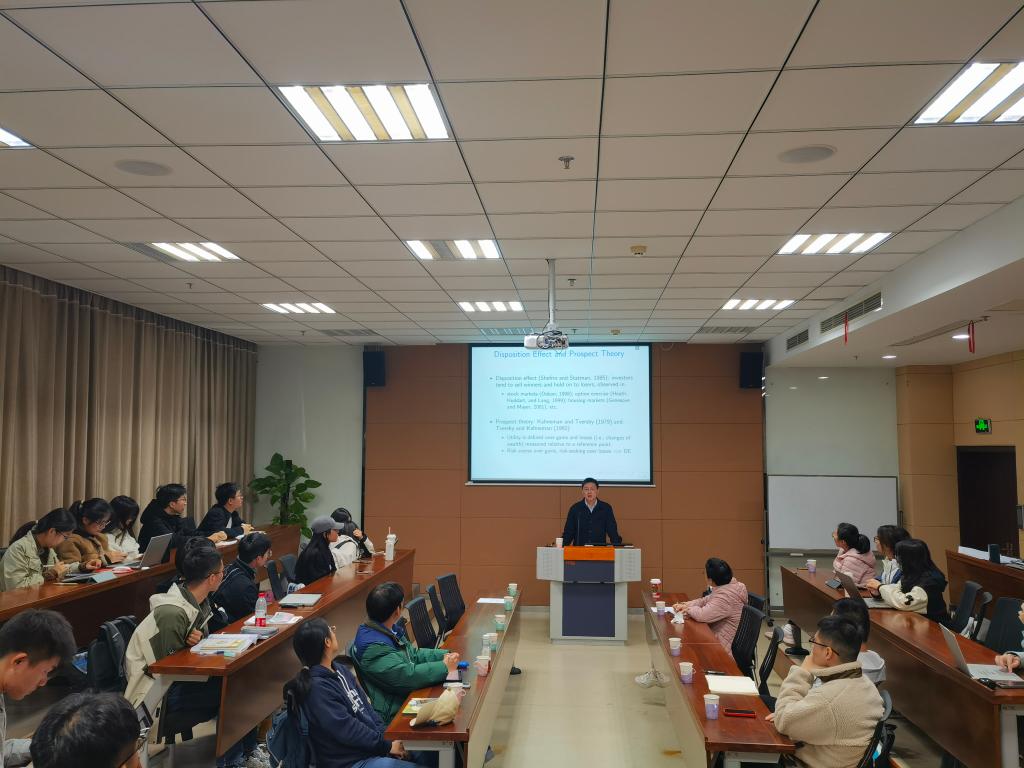 11月28日下午,“商学大讲堂”系列学术讲座第231讲在成人片 116东方厅举行。苏州大学金融工程研究中心副教授,苏州大学首届优秀青年学者,中国运筹学会金融工程与金融风险管理分会常务理事秦聪受邀作题为《Dynamic trading with realization utility》的学术讲座,分享所在团队最新的研究成果。同时该学术论文也即将出版在国际顶级金融学期刊Journal of Finance。本次讲座由成人片 金融系陈文婷教授主持,金融系教师、应用经济学、金融专业的本科生和研究生50余人参与了本次讲座。