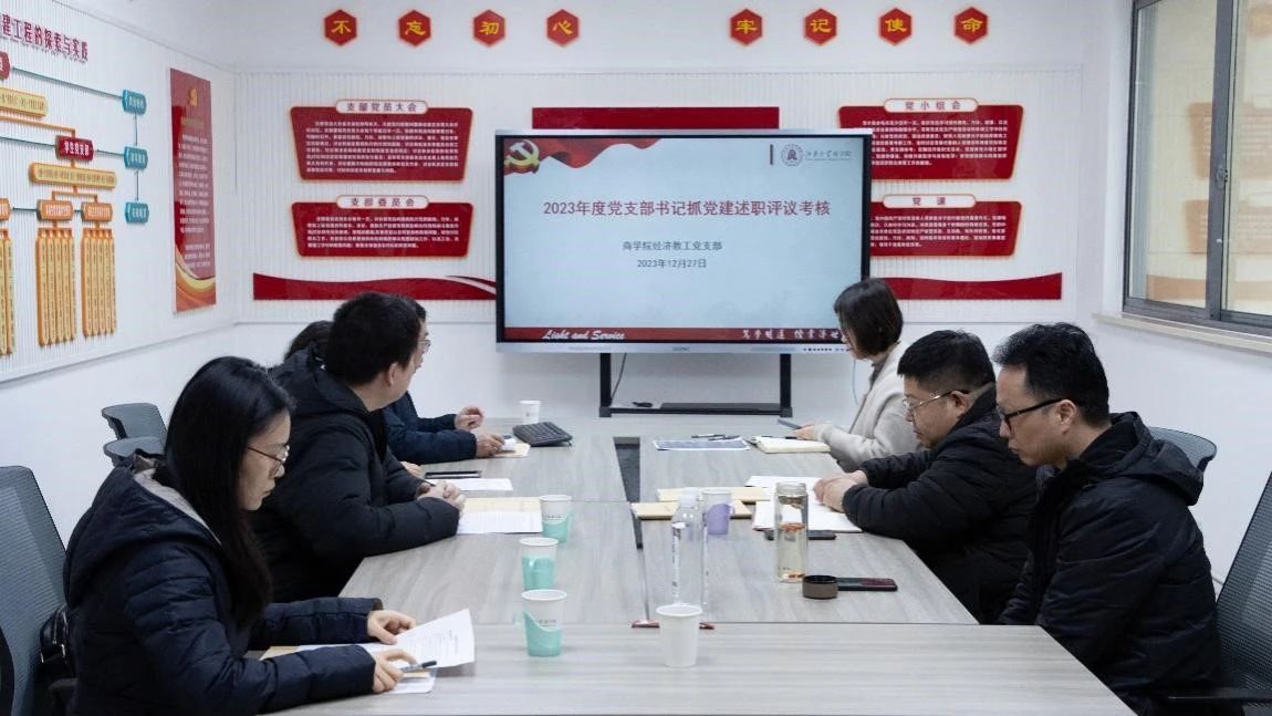 学生党支部工作方面,成人片 21硕第一党支部始终把加强学习作为学生党建的基础性工作进行部署,积极与团支部进行共建,关注入党积极分子的思想动向,以党建带团建;21硕第二党支部挖掘研三学生特征,互相提供学术、就业、竞赛等帮扶;高年级第三党支部与江苏银行无锡分行党支部开展结对共建活动,以党支部共建为契机,推动校企之间深入合作;高年级第二党支部依托孙冶方特征团支部这一平台,多次走访孙冶方故居,积极参与弘扬孙冶方精神并推动党支部思政建设,所在班级获评2022-2023学年校先进班集体标兵。其他党支部也分别介绍了支部特色与未来思考,积极打造“一支部一品牌”活动。