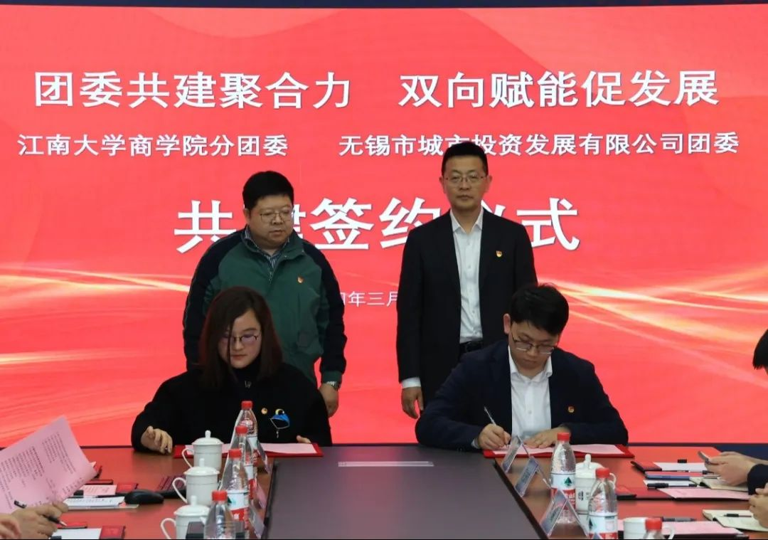 会上同时进行了城投公司团委与成人片 分团委共建签约。市城建发展集团团委书记陆庭翰代表城投公司团委与成人片 分团委书记王璁共同签署《共建大学生教育实践基地协议书》,将以运河艺术公园、梁溪河十里画廊为载体,开展青年志愿服务、历史文化宣讲、研学交流体验等系列活动,用青年力量服务新时代文明实践,为现代化人文宜居城市建设添砖加瓦。