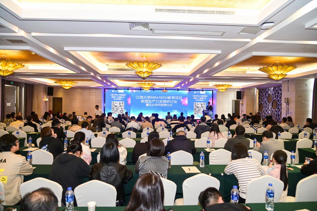 副教授、MBA项目学术主任任华亮老师担任主持,德地氏流程系统设备(无锡)公司CFO肖鹏飞,上海形家广告设计有限公司董事长金康,某国际证券董事潘程琳,无锡王道科技有限公司董事长、CEO高晓峰等四位企业导师担任分享嘉宾,大家共同了探讨新质生产力背景下MBA和MEM人才培养及项目建设发展,大家提出了对新质生产力的理解以及与教育项目培养建设融合发展的思考分享。
