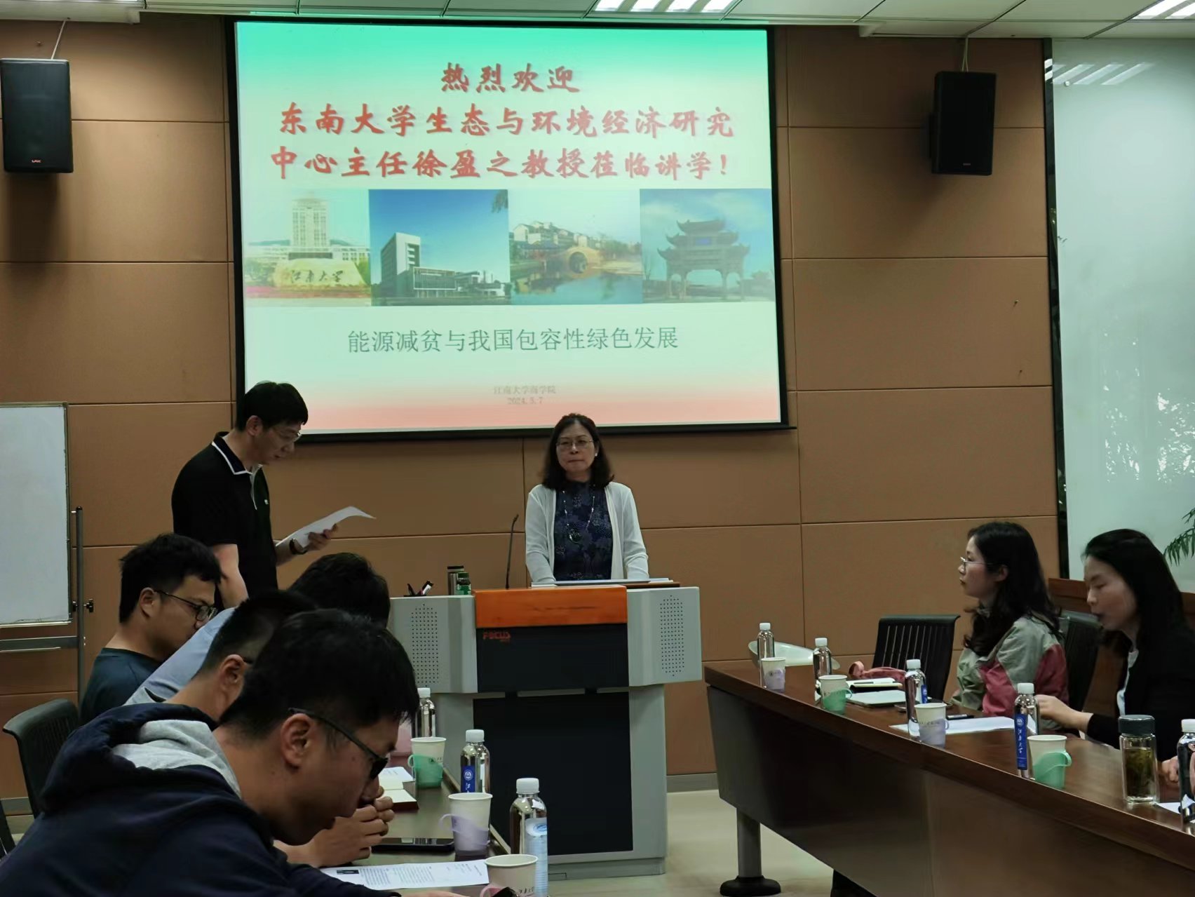 5月7日下午,“商学大讲堂”系列学术讲座第241讲在成人片 118报告厅举行。东南大学经济管理学院特聘教授、生态与环境经济研究中心主任徐盈之应邀作题为“能源减贫与我国包容性绿色发展”的学术讲座。本次讲座由国际经济与贸易系主任戴越副教授主持,成人片 教师和应用经济学、金融学等专业研究生近50人参加。