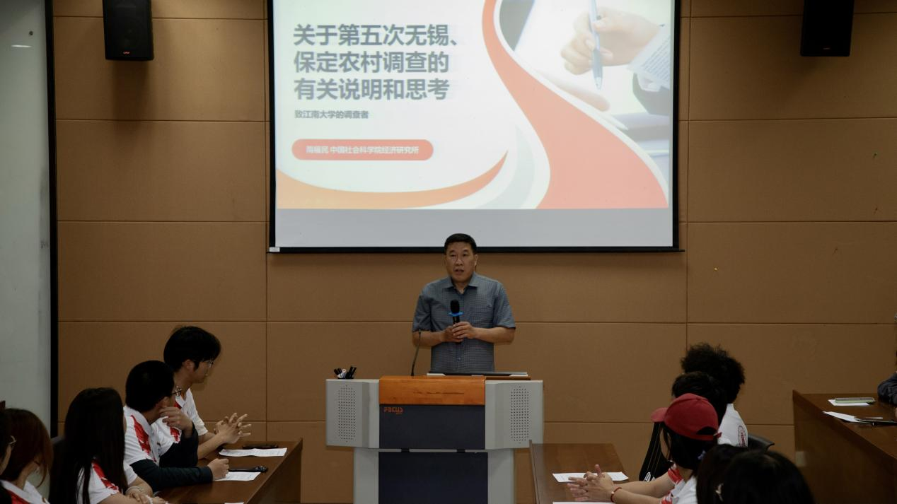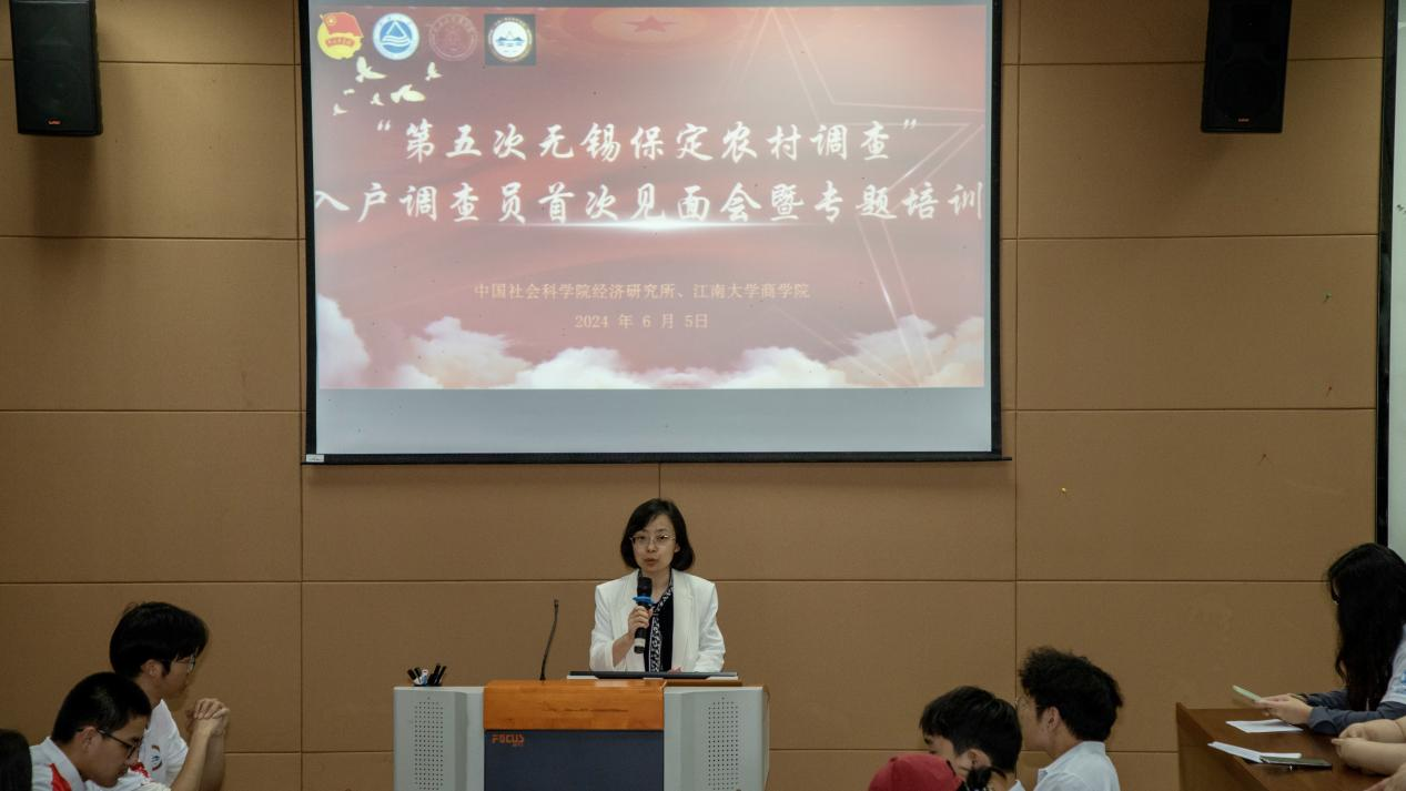 6月5日下午,“第五次无锡保定农村调查”入户调查员首次见面会暨专题培训在成人片 MBA118会议室举行。中国社会科学院经济研究所研究员、中国社会科学院大学教授隋福民,成人片 党委副书记兼副院长徐静、分团委书记王璁以及成人片 70名入户调查员出席活动。
