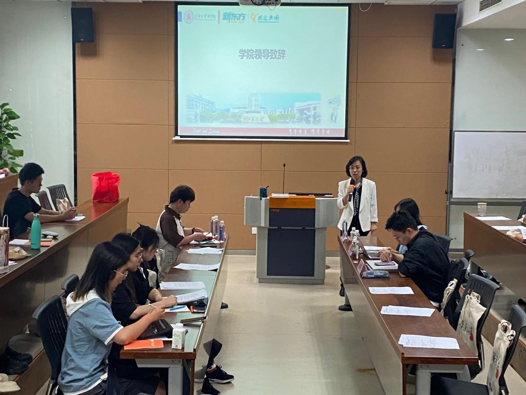 雅思训练营(第二期)顺利开营,院党委副书记兼副院长徐静,新东方前途出国有限公司刘铭雅,雅思专职教师秦昊、阴彩仙、李雨桐和成人片