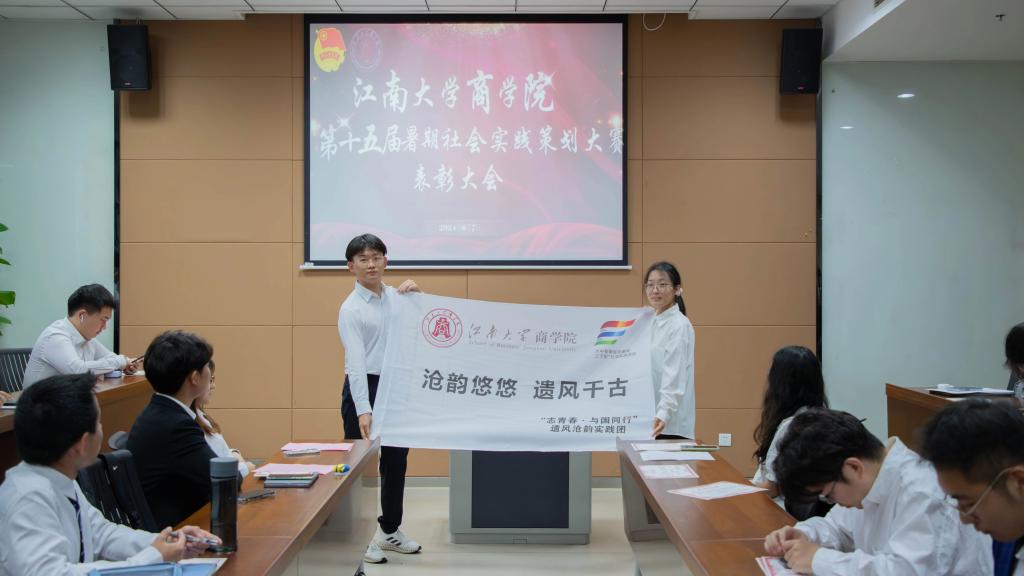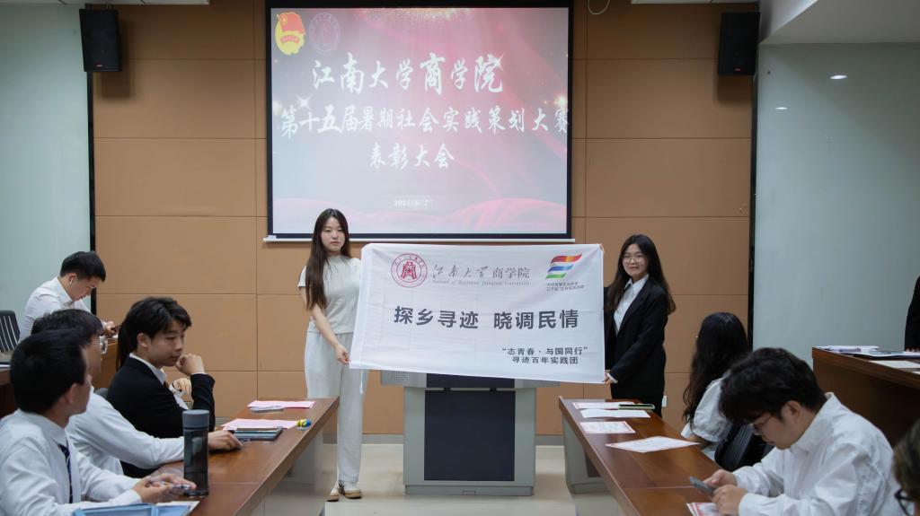 本届暑期社会实践策划大赛初赛于5月上旬进行,通过评审参赛团队暑期社会实践申报书和策划书,共有12支优秀团队进入复赛答辩环节;复赛于5月15日在成人片 MBA116会议室开展,学院金融系主任徐炜副教授、组织管理系主任汪长玉副教授、分团委书记王璁、分团委副书记曹梦然、辅导员呼酩杰等担任评委,经过各参赛队展示答辩,最终视角富有商科特色、策划内容充实、行动方案详尽的9支队伍胜出并荣获奖项,由分团委副书记曹梦然颁发荣誉证书。