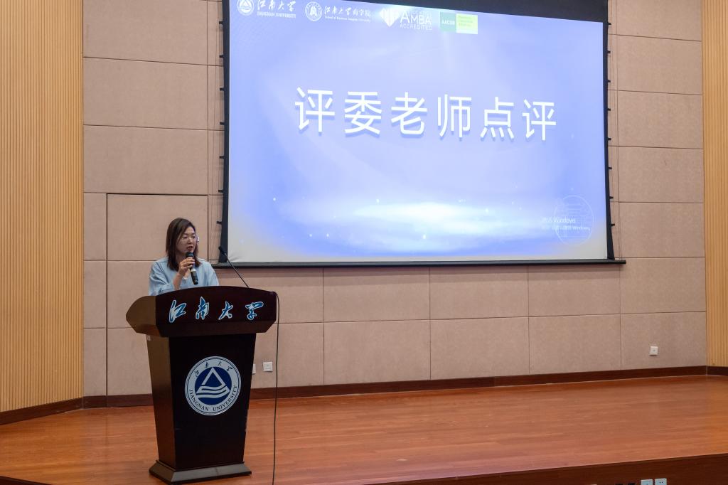 比赛结束后,案例中心主任马骏副教授代表指导老师发言,马老师表示学生团队认真准备,表现出MBA学子的精神风貌,案例课程收获良好,案例中心会持续做好案例开发和研究工作,助力学院高质量发展。评委主席钱文颖和其他四位评委分别对同学们的表现一一点评,大家充分肯定了参赛队员案例写作的规范性、教学说明设计的专业型都有了很大的提升,高度赞扬了赛事组委会精心的准备工作和专业多元化的评审机制,期待成人片