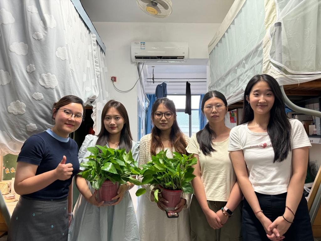 特意准备绿植盆栽作为新生们的“乔迁之礼”,寓意新生们在这里茁壮成长。王璁老师在走访寝室时将绿植递到新生手中,祝愿这份绿意伴随新生们度过每一个美好的日子,共同见证彼此的成长和蜕变。