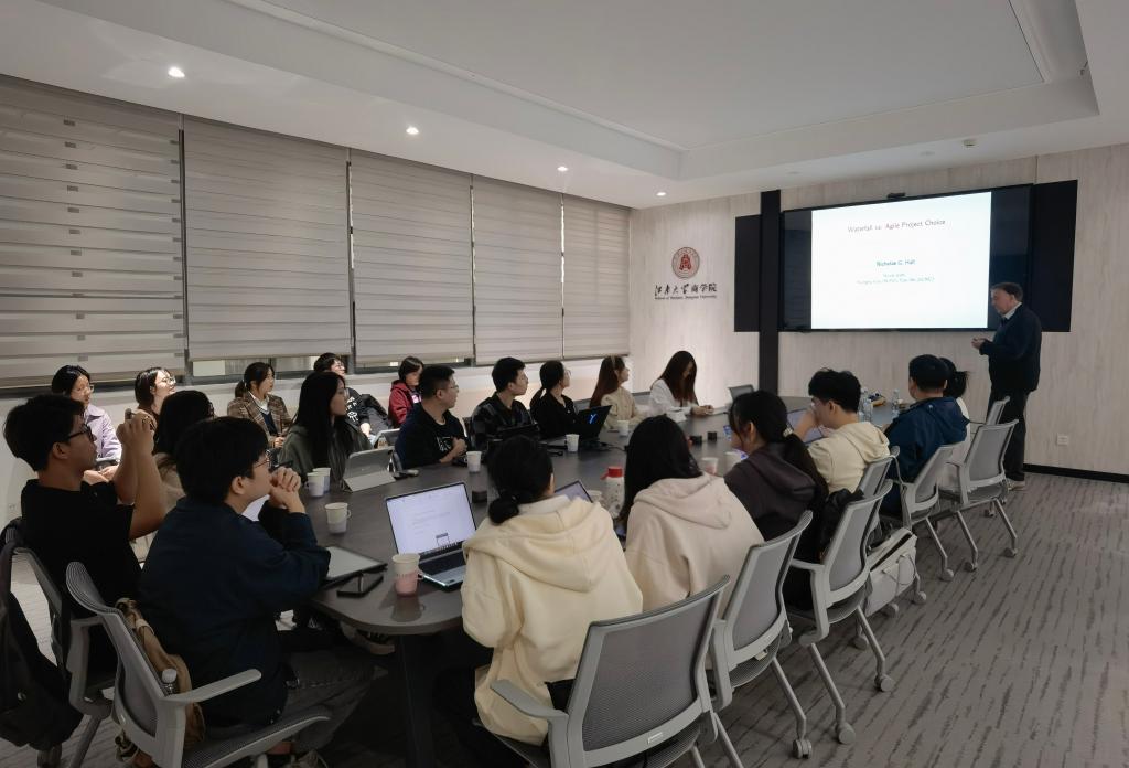 讲座结束后,Hall教授与在场师生进行了深入互动,讨论了项目管理、流程优化以及学术研究中的挑战与方法。他的精彩讲解和生动的交流环节赢得了与会师生的阵阵掌声,并引发了大家对项目管理领域研究的浓厚兴趣和深度思考。