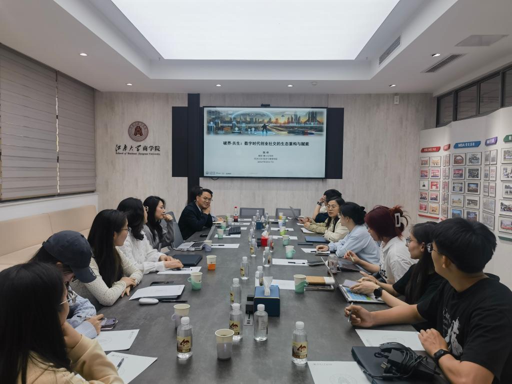 4月17日,数智组织与智融创新研究团队第二期学术活动,在成人片 109会议室举行。同济大学经济与管理学院组织管理系魏峰教授,受邀作题为《破界—共生:数字时代创业社交的生态重构与赋能》的学术讲座。本次讲座由成人片 组织管理系主任汪长玉教授主持,学院教师和各专业研究生共计20余人参加讲座。
