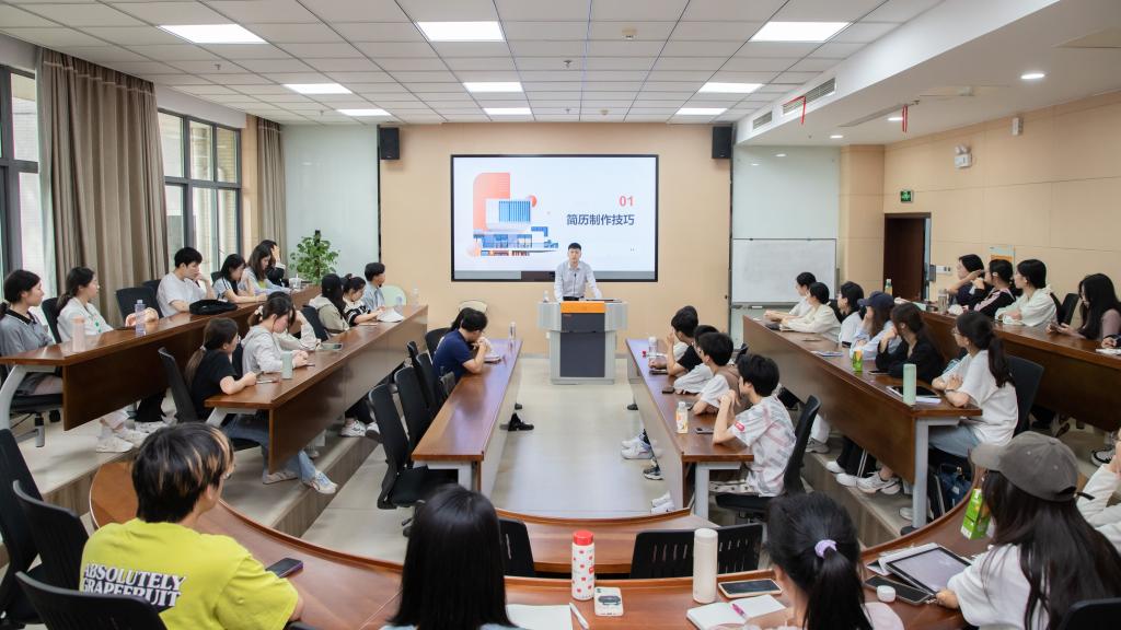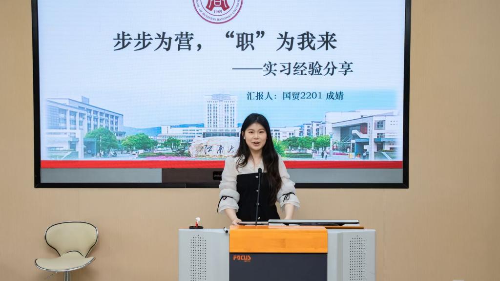 为引导学生做好职业发展规划、提升求职竞争力,5月19日下午,成人片 于116教室举办“望志兴业”导向就业训练营——实习经验分享专场。讲座邀请宁波银行无锡分行招聘部高级经理助理赵天傲以及具有多段中国500强企业实习经历的成婧同学担任主讲嘉宾。2022、2023级本科生50余人参加此次讲座。