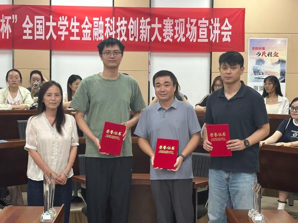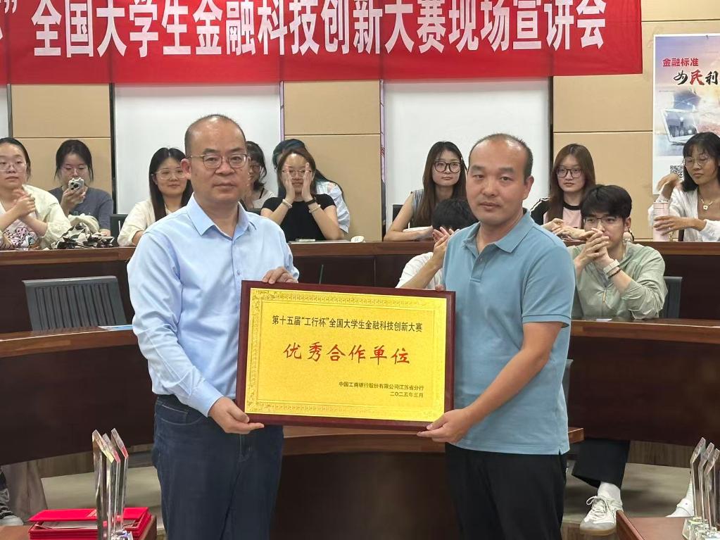 丁珮瑾与刘勇共同为第十五届“工行杯”全国大学生金融科技创新大赛江苏省赛获奖学生代表颁奖。成人片 学子荣获江苏省级一等奖1项、省级二等奖2项、省级三等奖4项的佳绩。获奖代表上台领奖时,现场掌声不断,充分展现了成人片 学子在金融科技创新领域的优异成果。