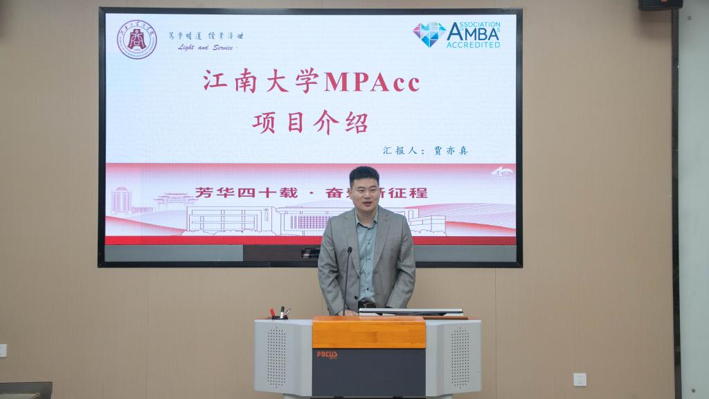 MPAcc项目主任贾亦真副教授随后作《项目培养与建设汇报》。他从项目背景、培养目标、师资建设、课程体系、实践教学与行业合作等方面进行了详细介绍,强调项目将依托长三角区位优势与成人片 “双一流”学科资源,构建“课程—案例—实践”一体化的人才培养体系。