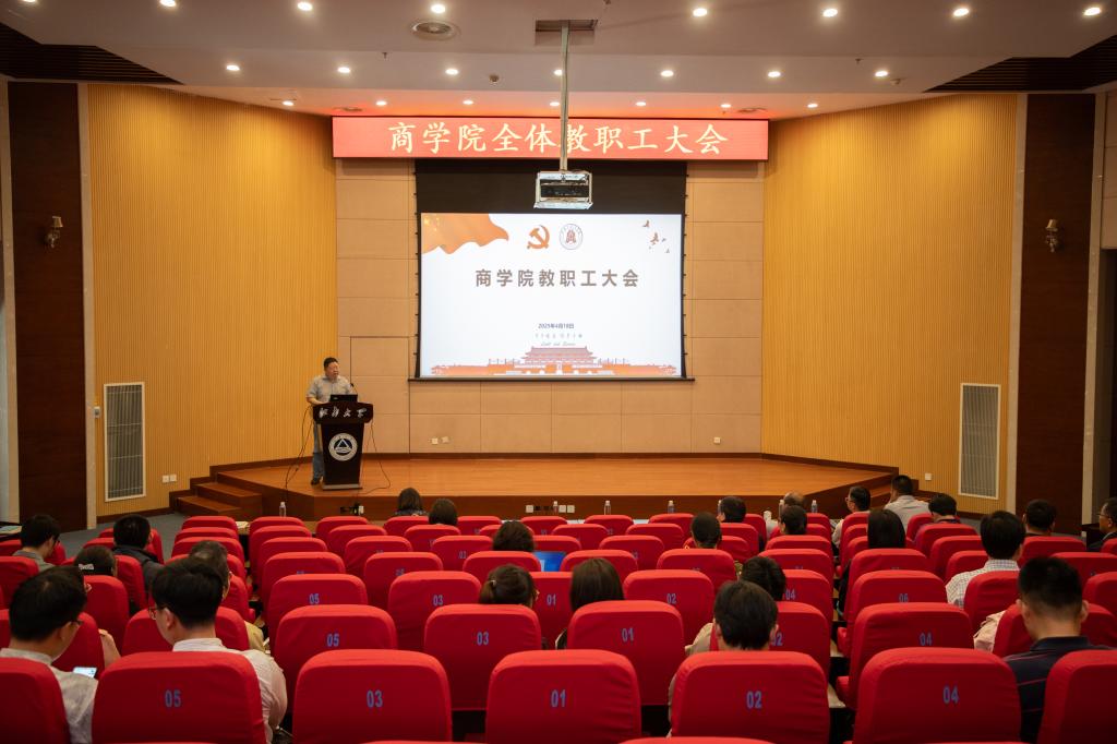 会议伊始,院长浦徐进带领全院教职工深入学习宣传贯彻中国共产党成人片 第五次党员代表大会精神,重点解读了大会报告《勇担强国使命,深化改革创新,为建设中国特色、世界一流、江南风格的研究型大学团结奋进》。他从学校过去五年的主要工作成就切入,详细阐述了教育强国建设新征程中的使命任务,对未来五年学校改革发展的方向和举措进行深入剖析,并强调以高质量党建引领高质量发展的重要性。此次学习让全体教职工明晰了学校发展的宏伟蓝图,激励教职工将个人发展与学校、学院的发展紧密结合。