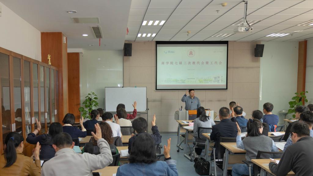 与会全体代表一致表决通过上会各项工作报告以及绩效工资实施细则(2025修订)稿,并表决同意增补成人片 党委副书记兼副院长孙小芳为教代会暨工代会代表。刘长青作总结讲话,他对大会提案工作进行布置,并表示欢迎各位代表认真思考、主动发声,积极向学院领导班子提出建设性意见。他指出,全院教职工应以建院40年来积累的深厚底蕴为基石,群策群力、凝心聚力,全力开启学院创新驱动发展新征程。