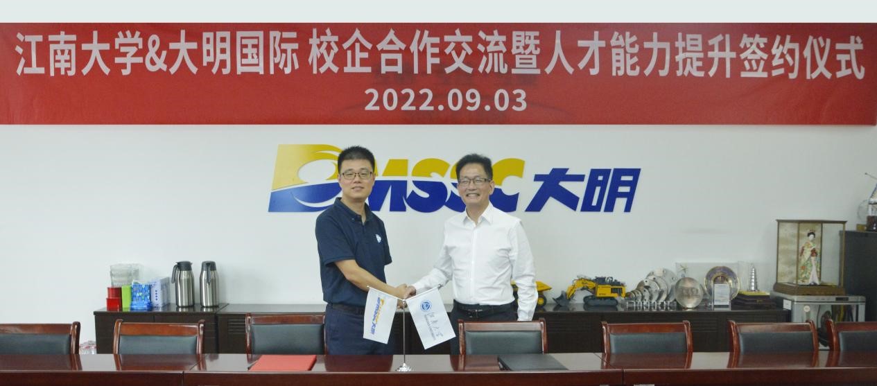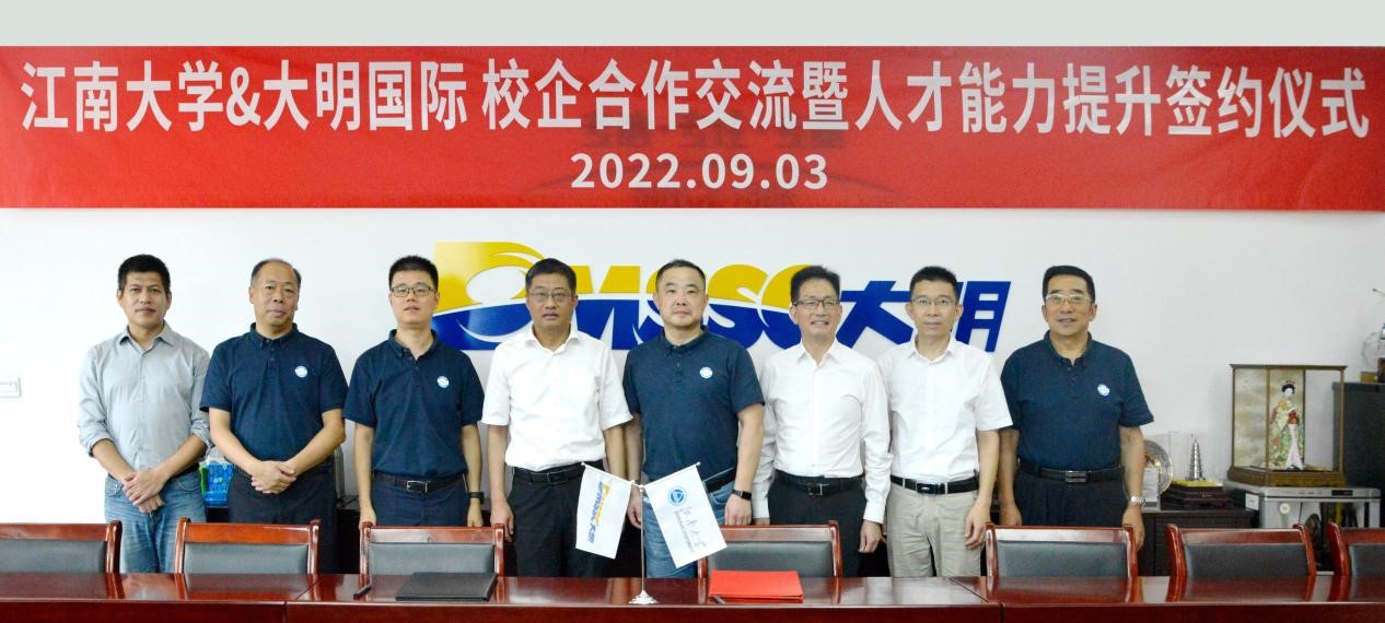 质量品牌研究院执行院长滕乐法、副院长李峰、江苏省品牌战略与管理创新重点研究基地副主任吴媛媛、单鹏等一行,来到大明国际控股有限公司签署了校企合作战略咨询项目。