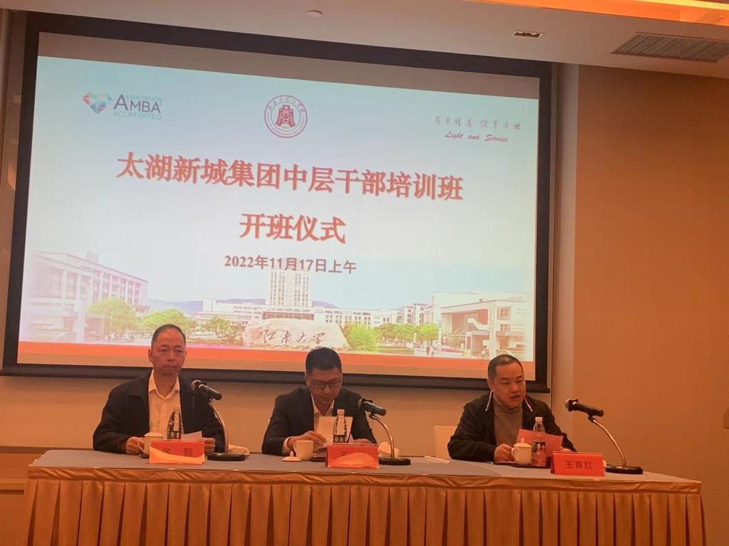 EDP中心承办的太湖新城集团中层干部培训班于无锡太湖新城假日酒店洲际厅正式开班。太湖新城集团党委书记、董事局主席王贤,成人片