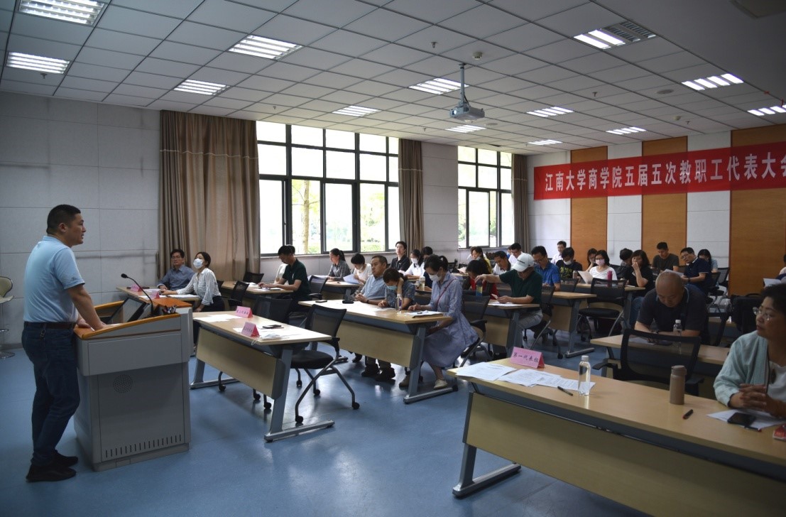 最后,张海峰要求各位代表,积极参与民主管理和监督,集中大家的智慧和力量,在建设和谐学院、推进高质量发展中发挥重要作用。他希望通过共同努力,爱学院、爱集体,自加压力爬坡过坎,学院的向心力、凝聚力和归属感一定会进一步增强,公平、互助、奋进、向上的商院大家庭一定会更和谐、更美好。