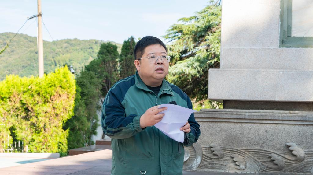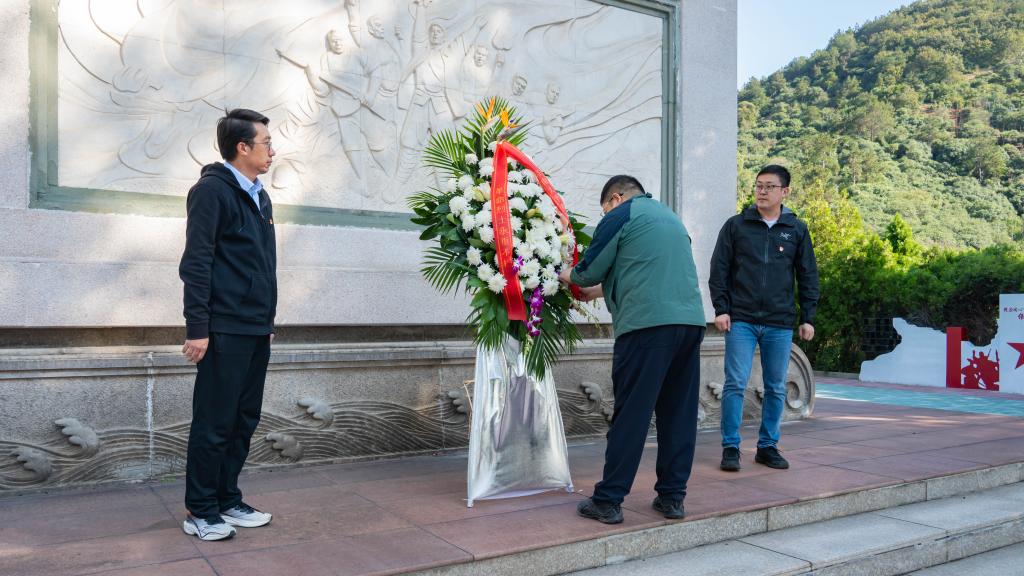 缅怀革命先烈仪式在马山革命烈士纪念碑前庄重举行。学院分工会委员孙旭媛介绍纪念碑历史背景与本次缅怀仪式的重要意义。全体教职工怀着崇敬之心追忆先烈,奏唱国歌,肃立默哀。随后,分工会委员唐杰、邢新朋代表全体教工向革命烈士敬献花篮,刘长青整理花篮缎带。