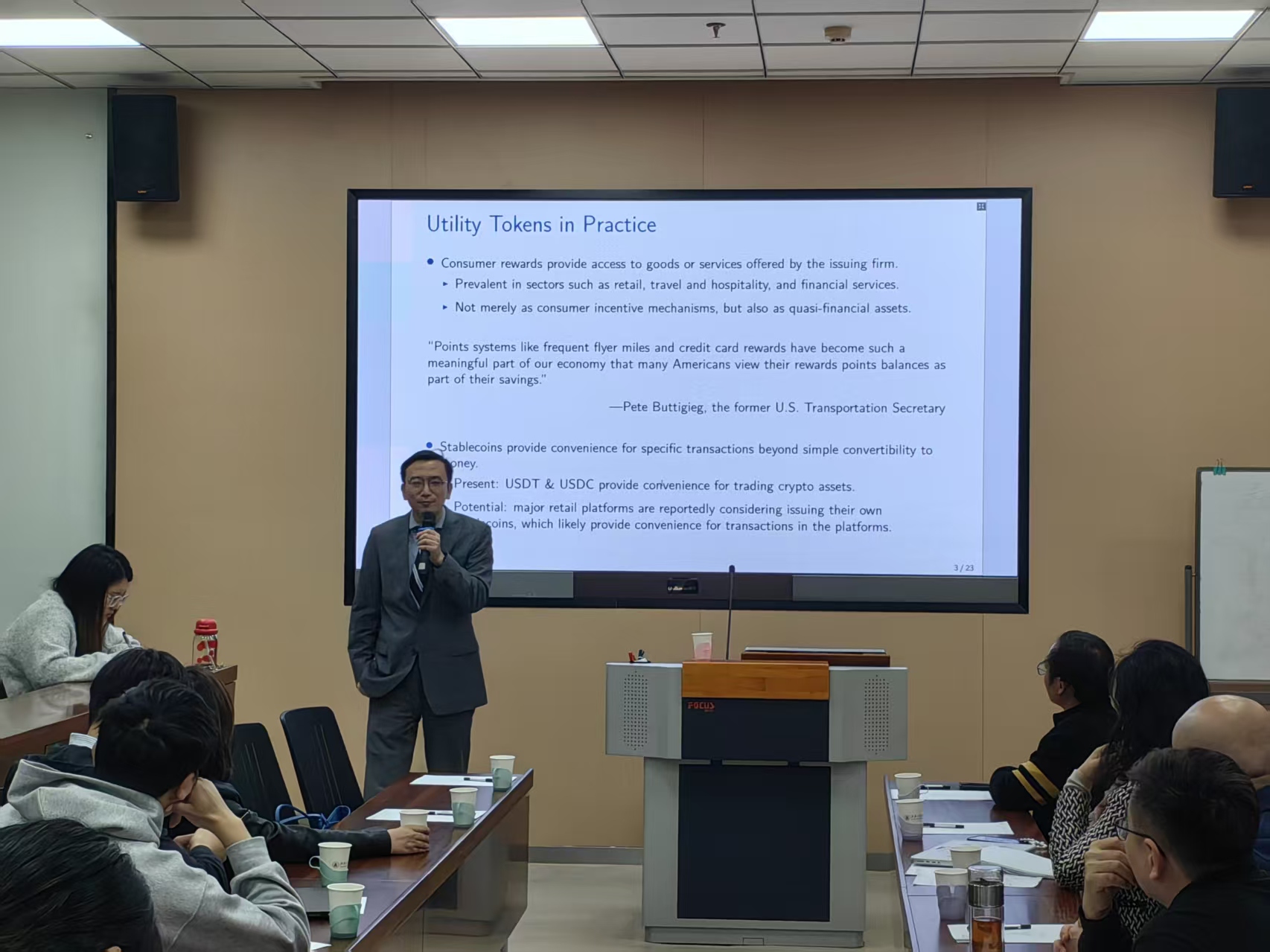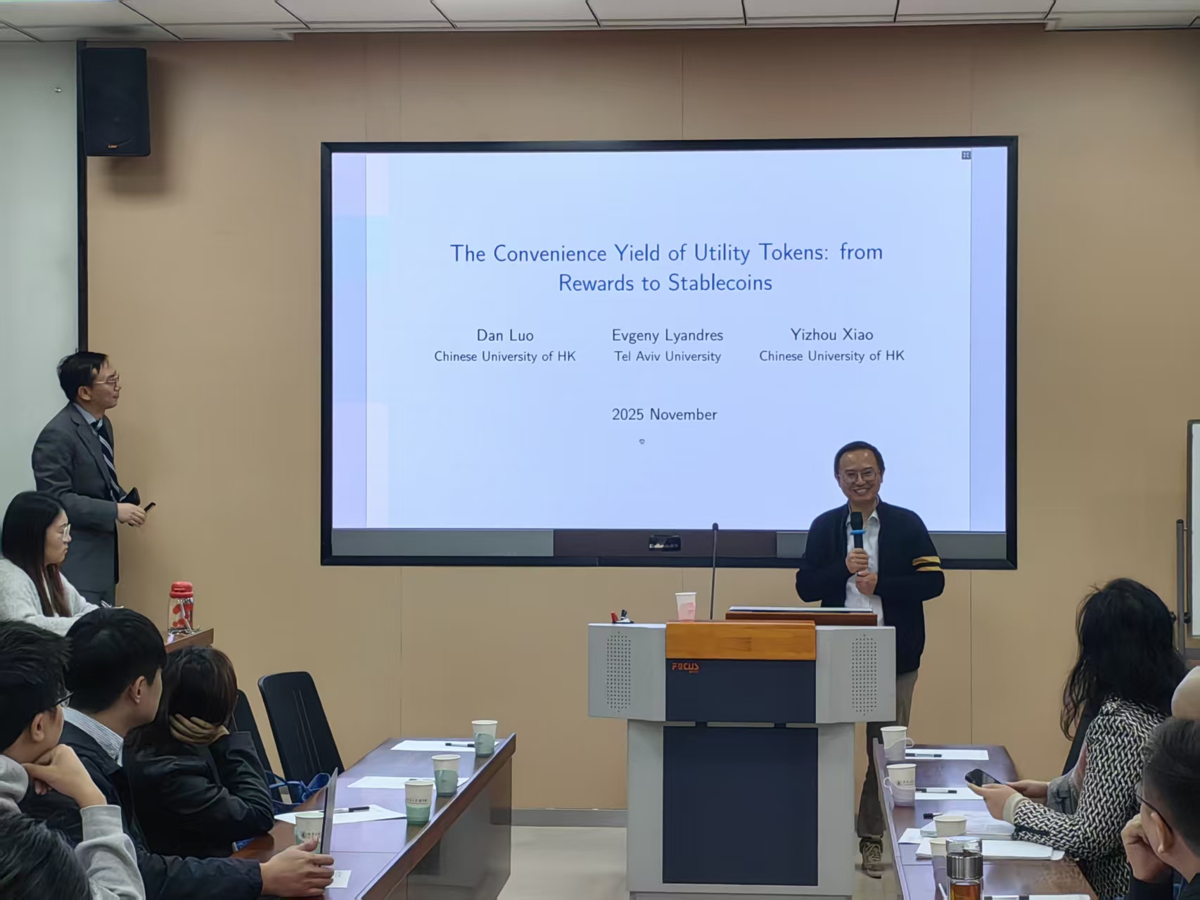 近日,商学大讲堂系列学术讲座第97讲在成人片 116东方厅举行。本次讲座特邀香港中文大学成人片 金融学副教授肖弋舟,作题为“The convenience yield of utility tokens:from rewards to stablecoins”的学术讲座。讲座由成人片 院长助理付辉副教授主持,苏州大学金融系主任方一蔚教授、西交利物浦大学洪苏婷副教授等校内外师生五十余人参加讲座。